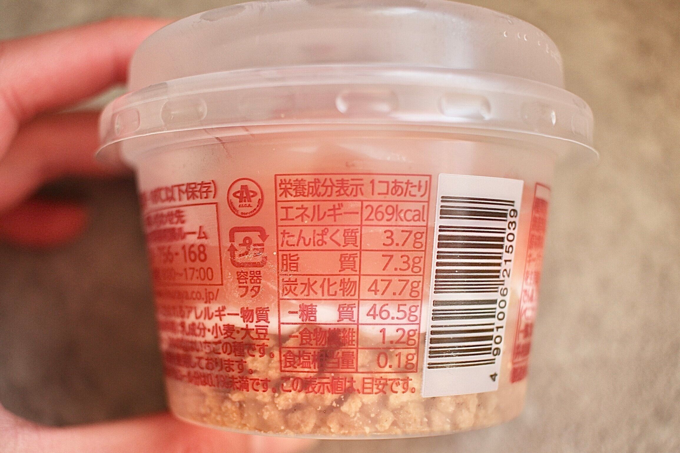 1個あたり269kcalとなかなか高カロリーなので15時のおやつの時間に食べるのがおすすめ。