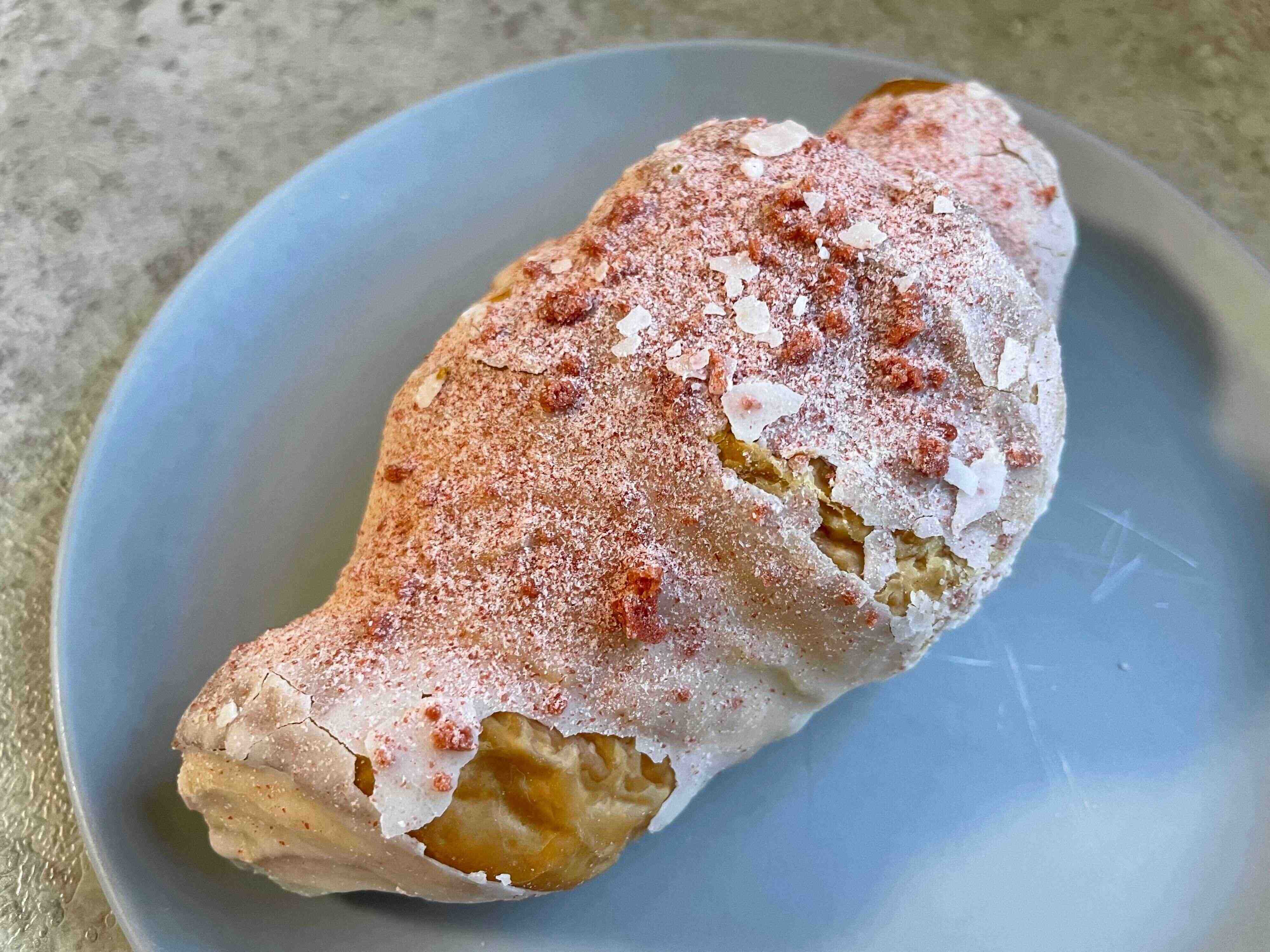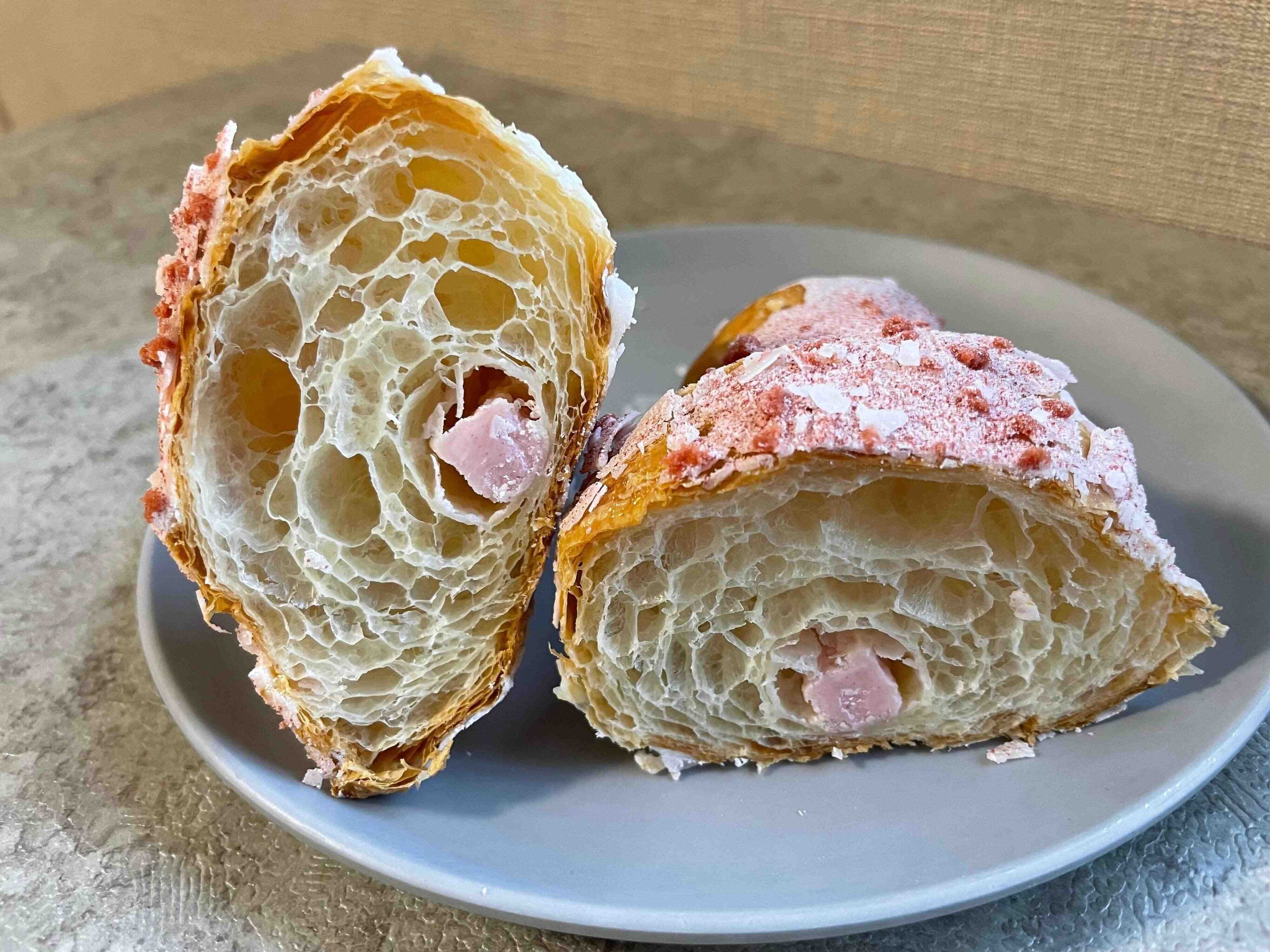デニッシュ生地はエアリー感たっぷりでしっとりとしています。バターの風味はやや控えめ、いちごの風味が強いです。中のいちごチョコは少ない印象でしたが、端から端まで入っていると濃厚なので、この量でも充分にいちごを楽しめます。