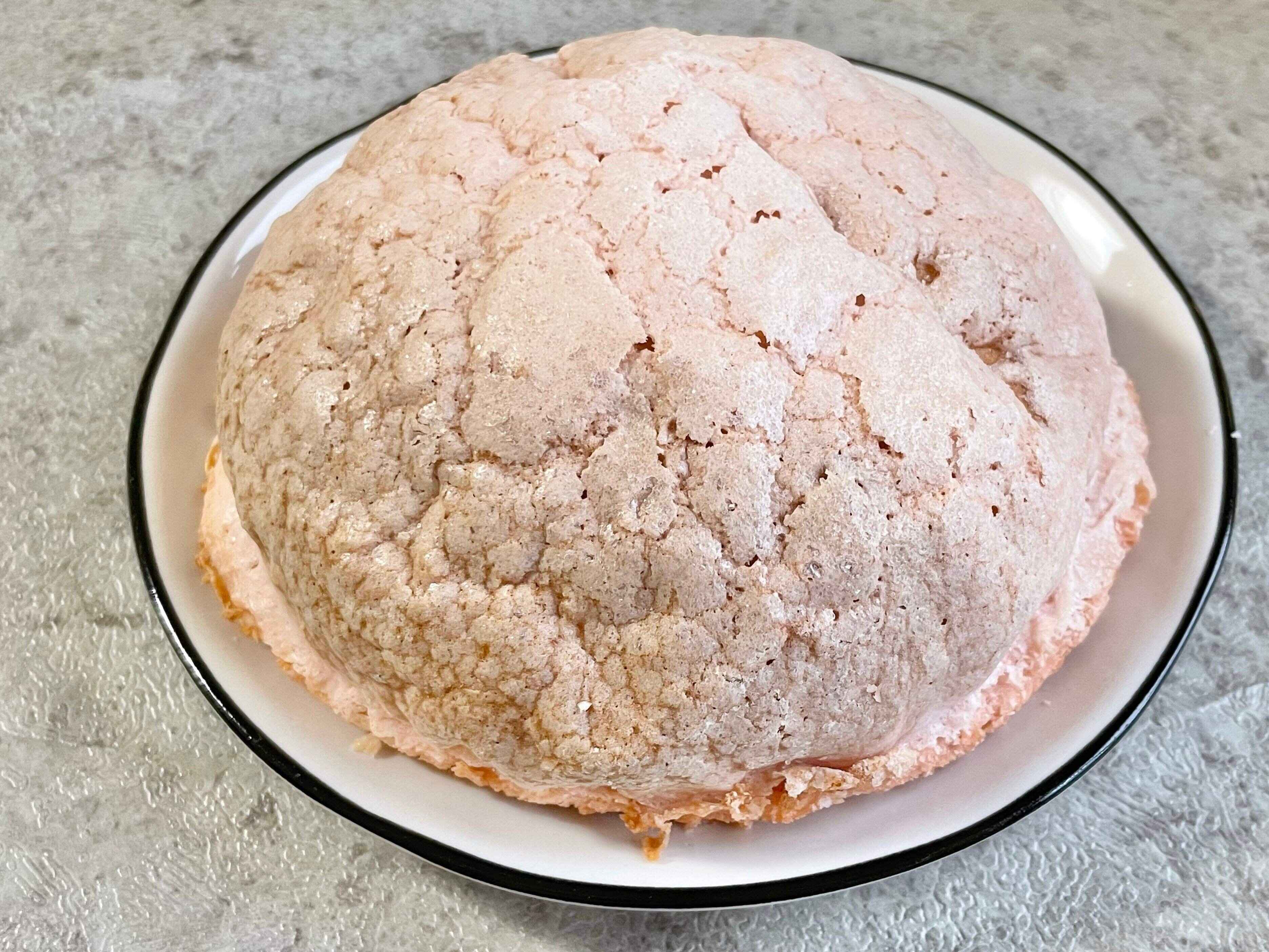 まるでメロンパン!?「いちごぼうしパン」(130円)