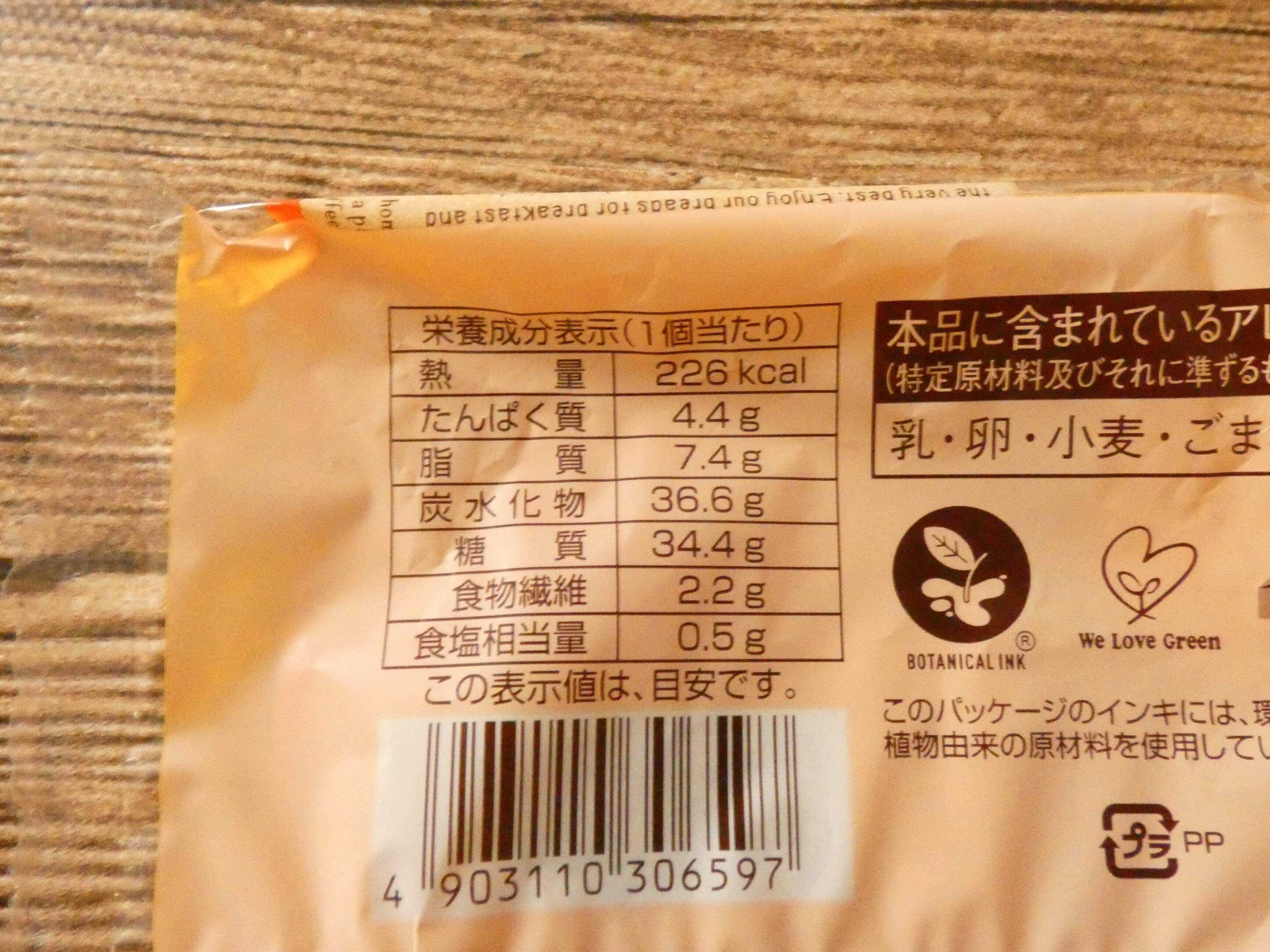 栄養成分表示を見ると1個のエネルギーは226kcal。