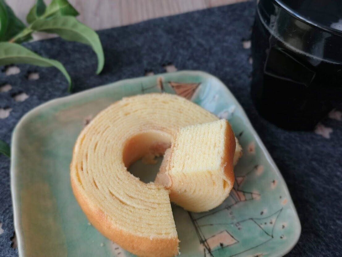 洋菓子系の重い感じのバームクーヘンではなく、ふんわりした軽さのある生地なので、ぱくぱく食べられてしまいます。