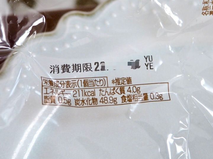 栄養成分表示はを見ると、エネルギーは小ぶりな大きさのわりに高めの211kcal。