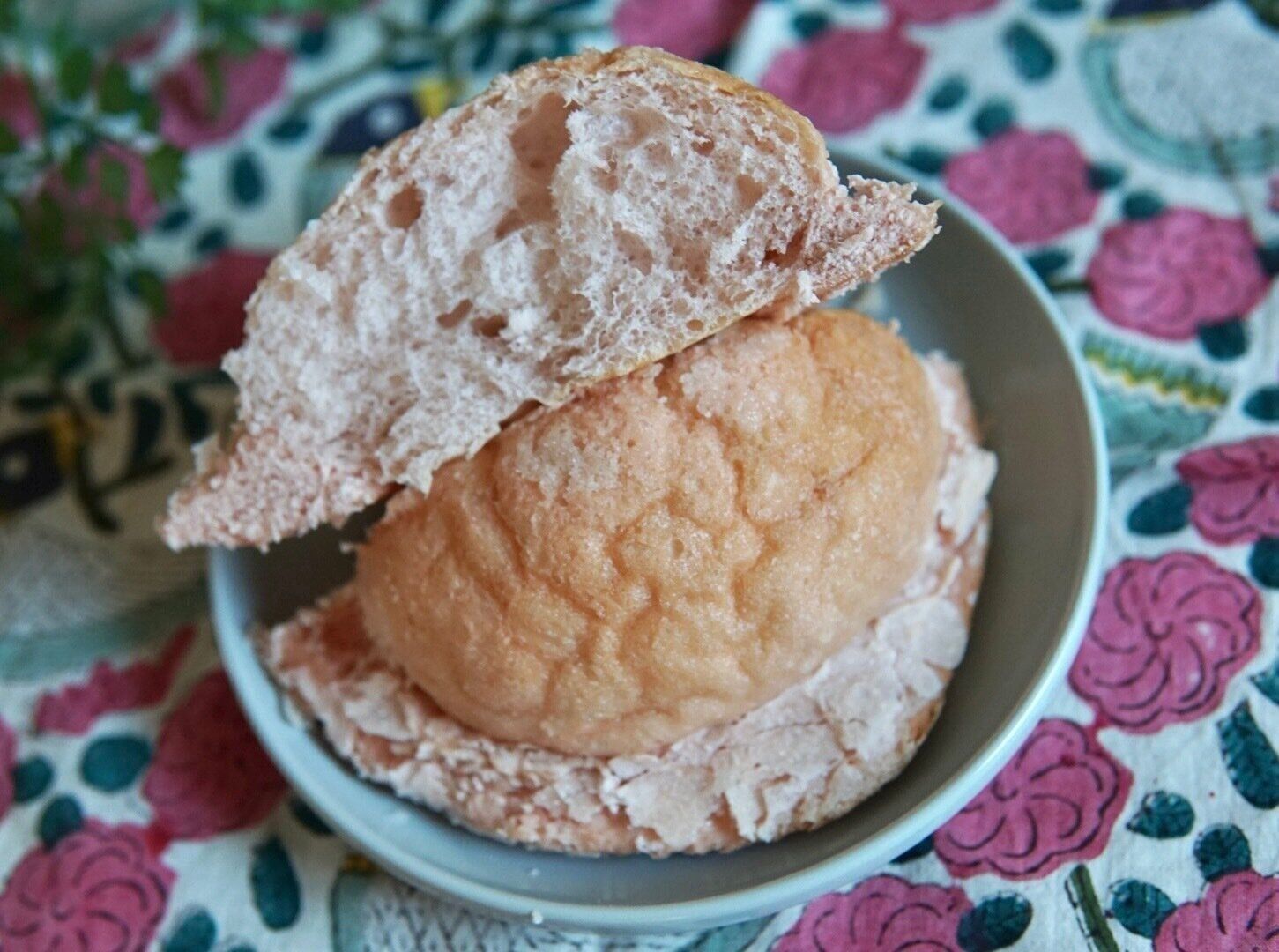 可愛らしいフォルム、そして素朴な味「いちごぼうしパン」
