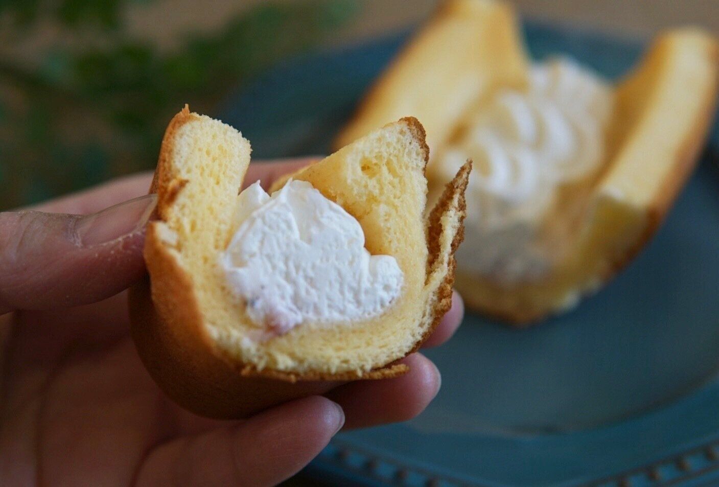 いちご風味のカステラ生地に、中まで淡いピンク色でいちご味のふわふわ生地が包まれています。袋を開けるとフワッと香るいちごフレーバー。ぼうしのふちにあたる部分がカリカリッとして砂糖の甘さが際立ちます。強い個性はないけれど、逆にそれがいいのかもと思わされる素朴な味わいでした。