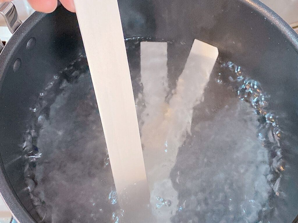 大きめの鍋で沸騰させたお湯の中に1本1本バラバラに入れます。