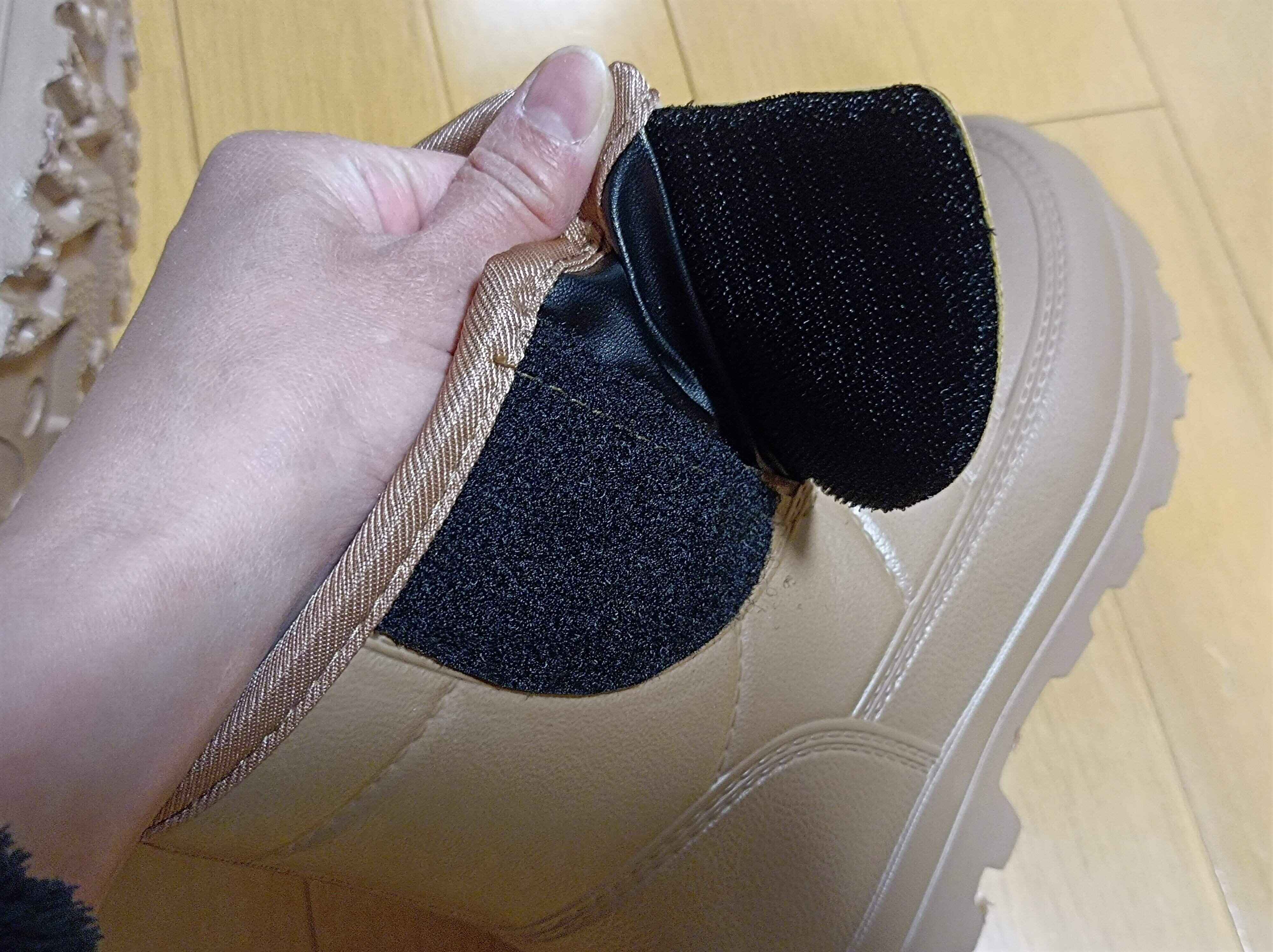 さらに、ブーツの側面には、大きいマジックテープの調整面がついているので、脱ぎ履きがとても楽なようです。