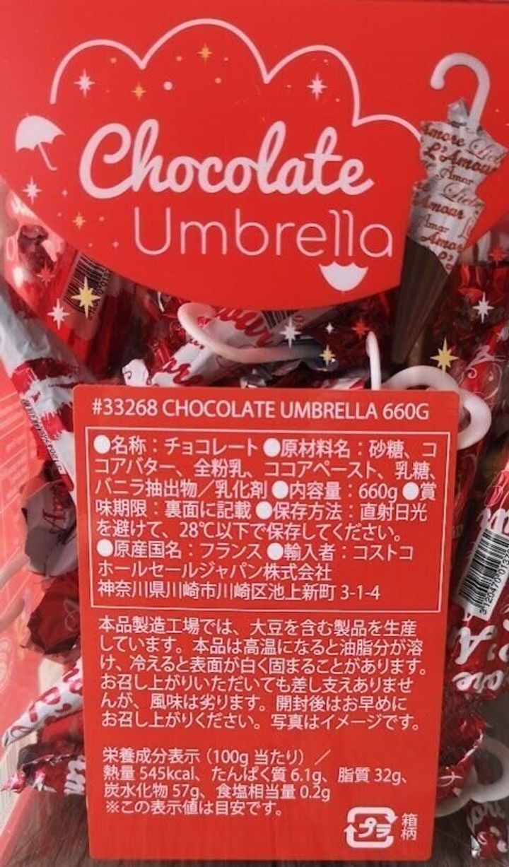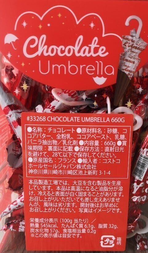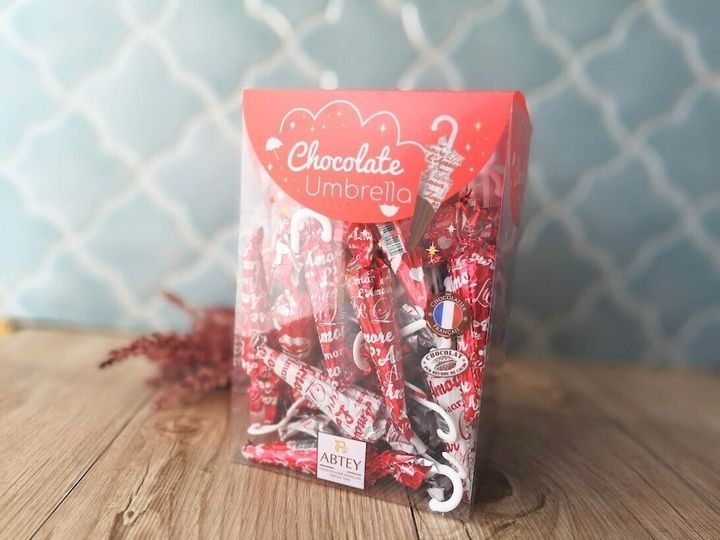 「チョコレートアンブレラ」は、1946年創業のフランス・アルザス地方のチョコレートメーカーABTEYの商品で、このミルクチョコレートアンブレラはABTEYが30年以上発売し続けている定番商品だそうです。