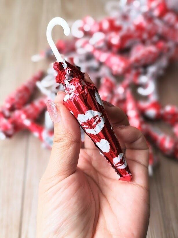 とにかくポップでカワイイパッケージと、ミニチュアのようなカサ型のチョコレートが目を引く商品ですよね!