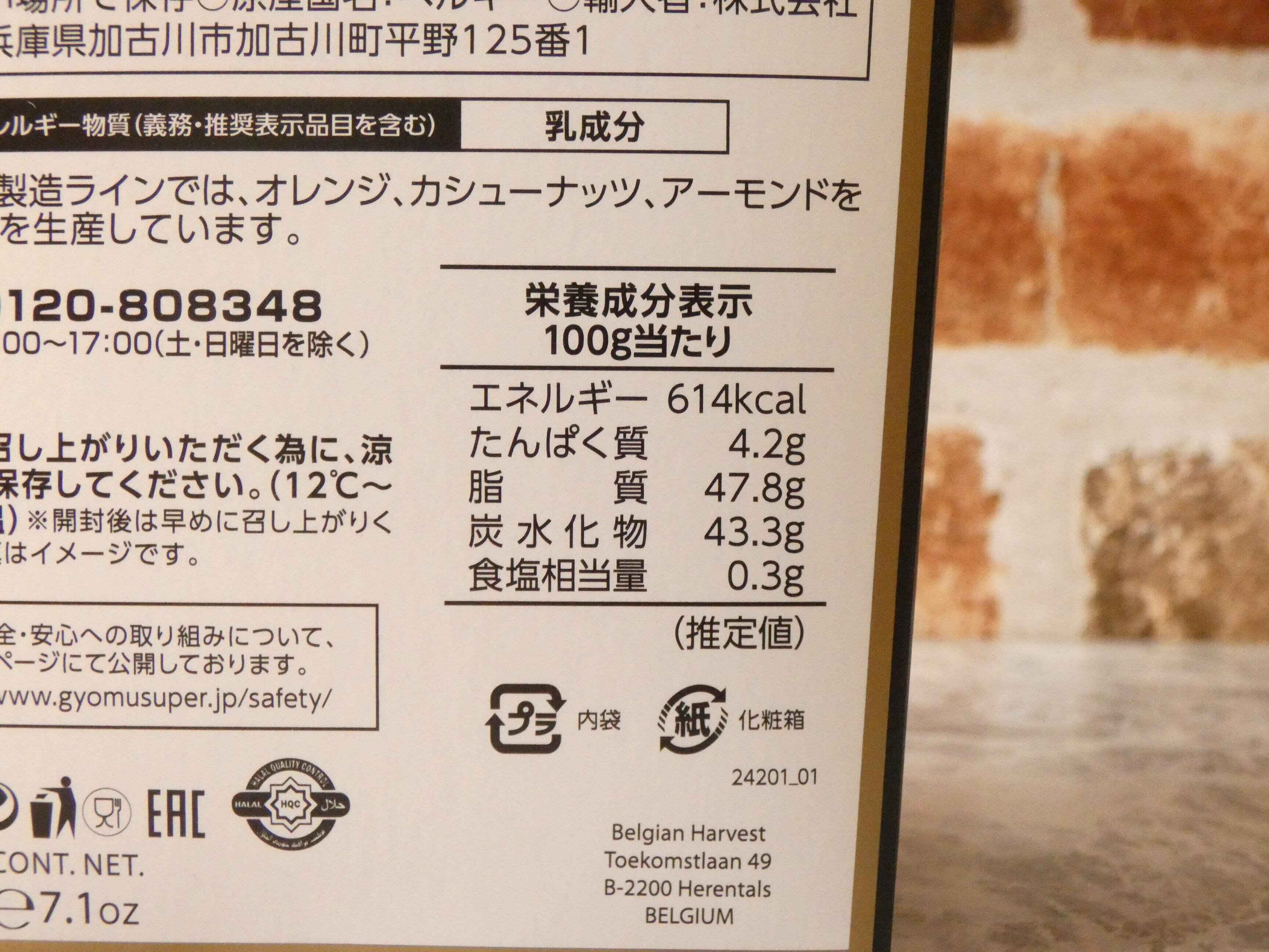 栄養成分表示を見ると100gあたりのエネルギーは614kcal。
