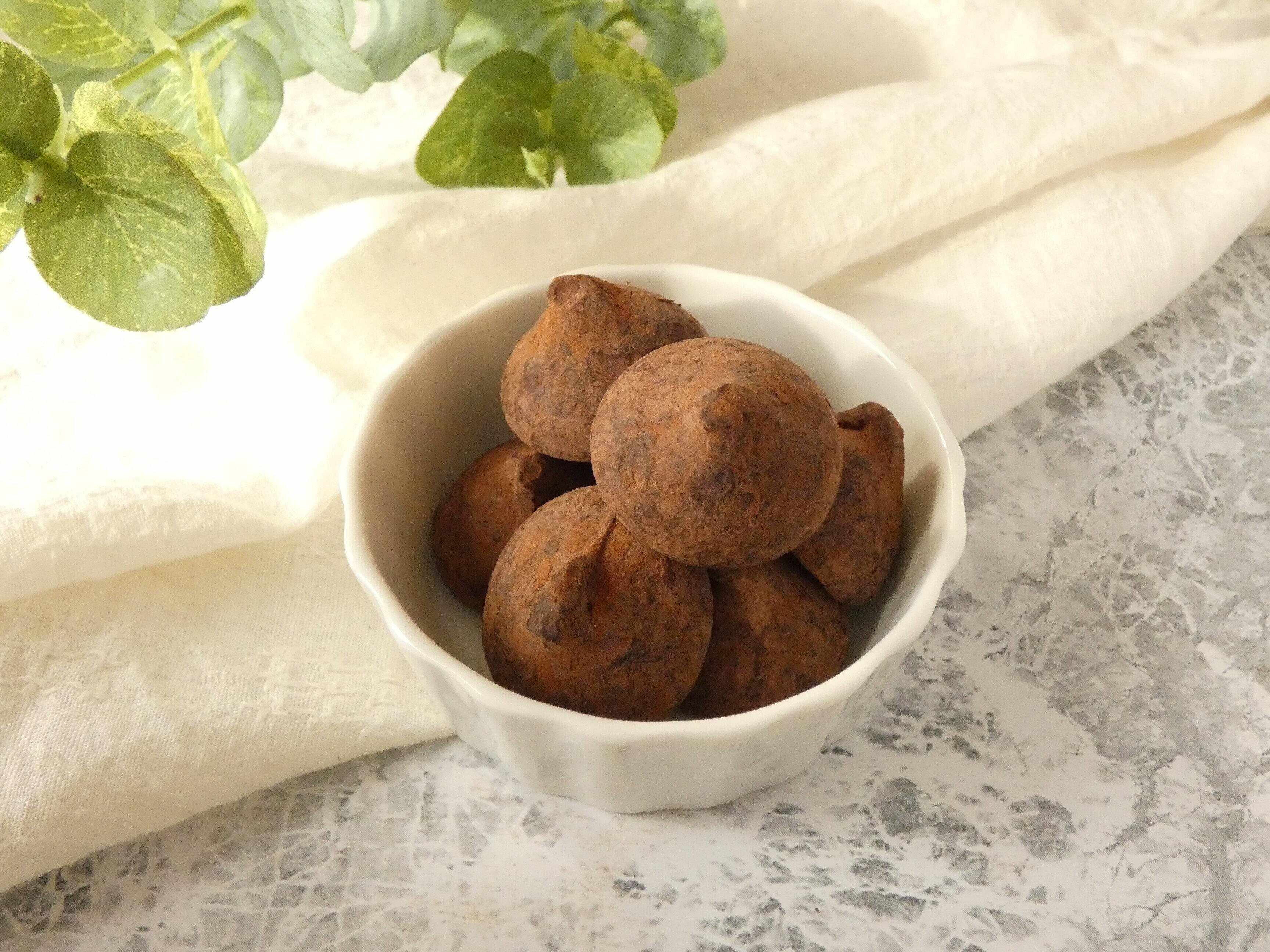 絞りだした形のコロンとしたチョコレートに、ココアパウダーがまぶしてあります。