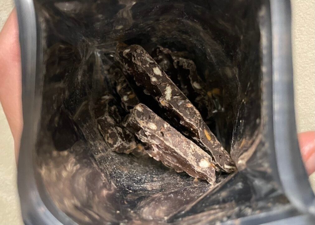 封を開けるとざっくりと砕かれた不揃いなチョコが数個入っています。