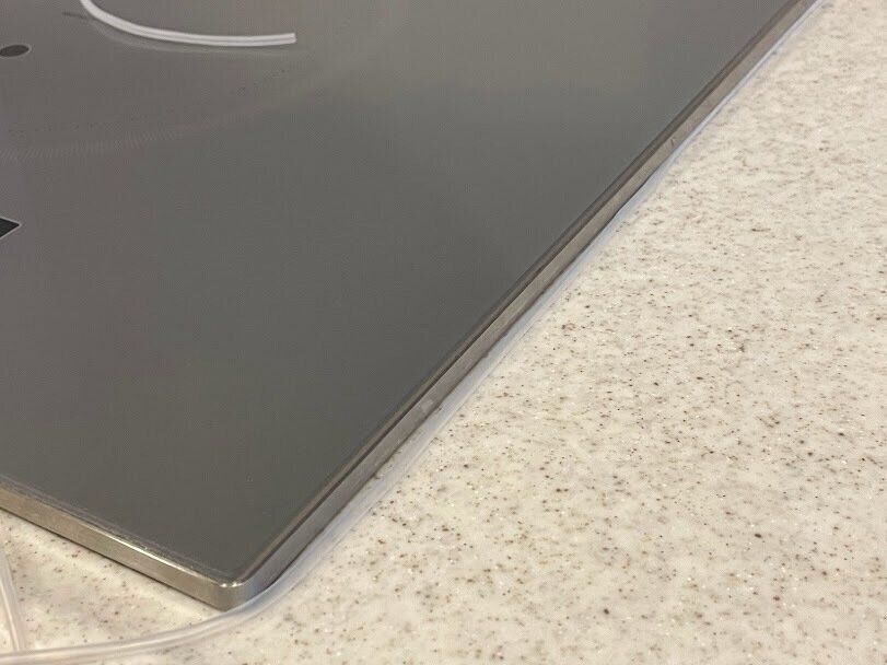 IHクッキングヒーターの隙間にぐるりと一周シリコーンを入れ込むだけ!慣れるまで隙間に入れ込むのが難しいかもしれませんが、慣れると簡単にできるようになります。隙間に汚れが入り込むのを阻止してくれるので、助かります!汚れが気になってきたら外すだけで良いのでラクですよ。
