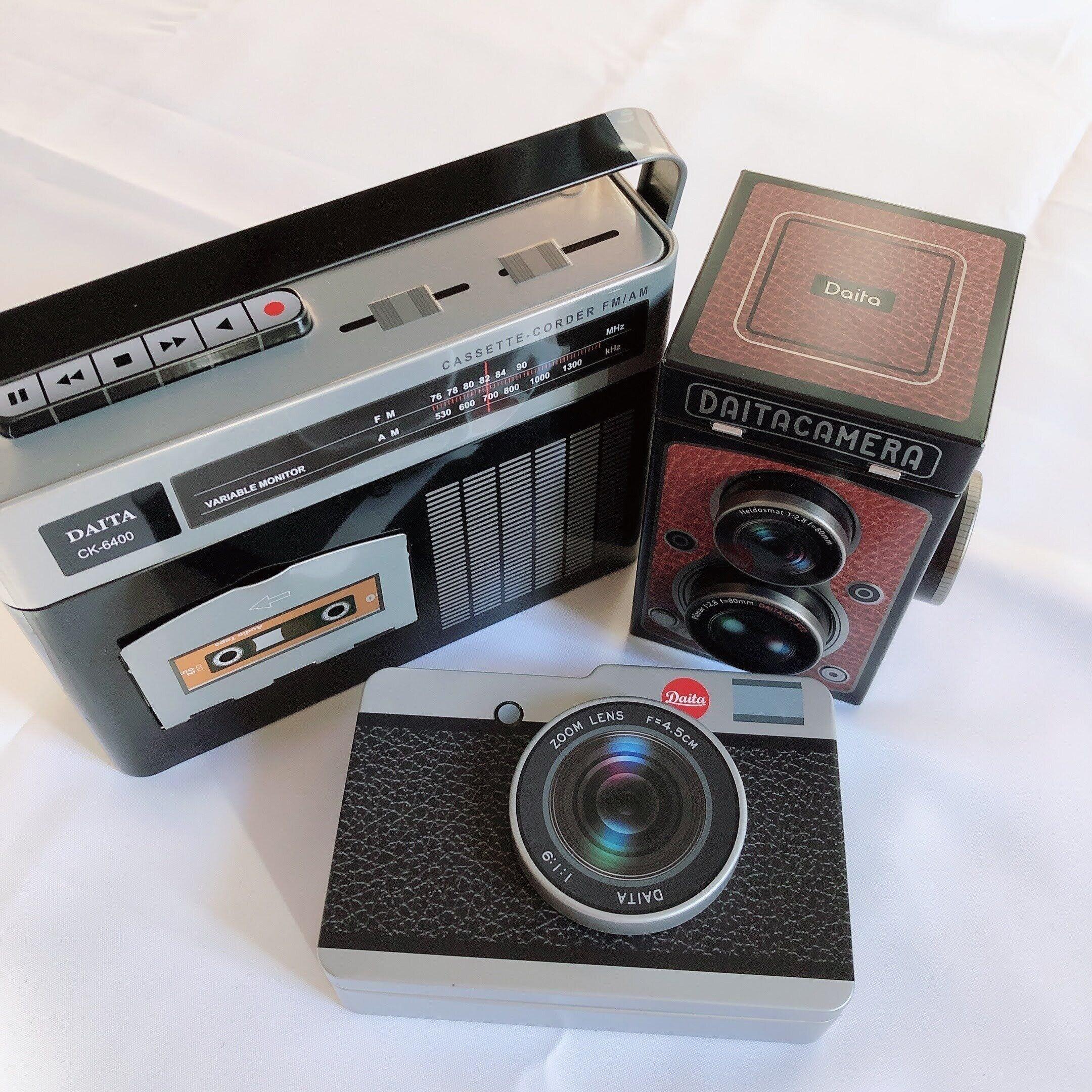 カメラ缶は立体的で、とてもリアルに作られています。本物のカメラも持ってはいますが、出しておくとほこりをかぶってしまうこともあり、しまいこんだまま。