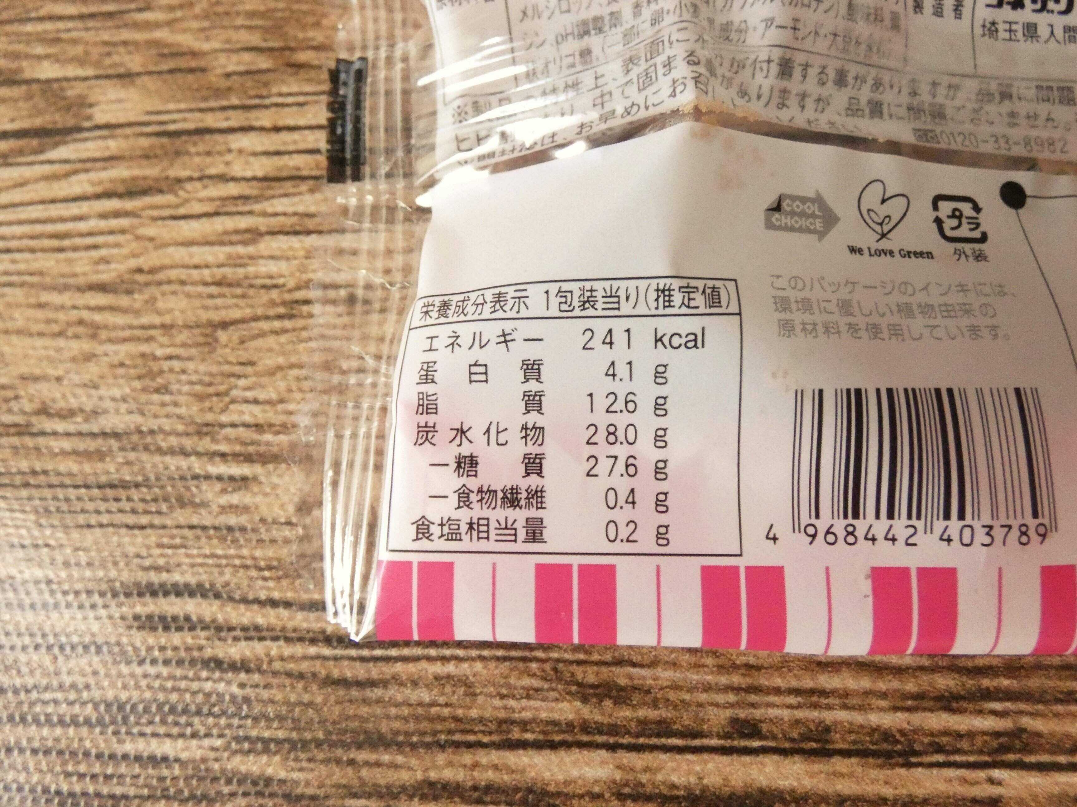 栄養成分表示を見ると1個のエネルギーは241kcal。