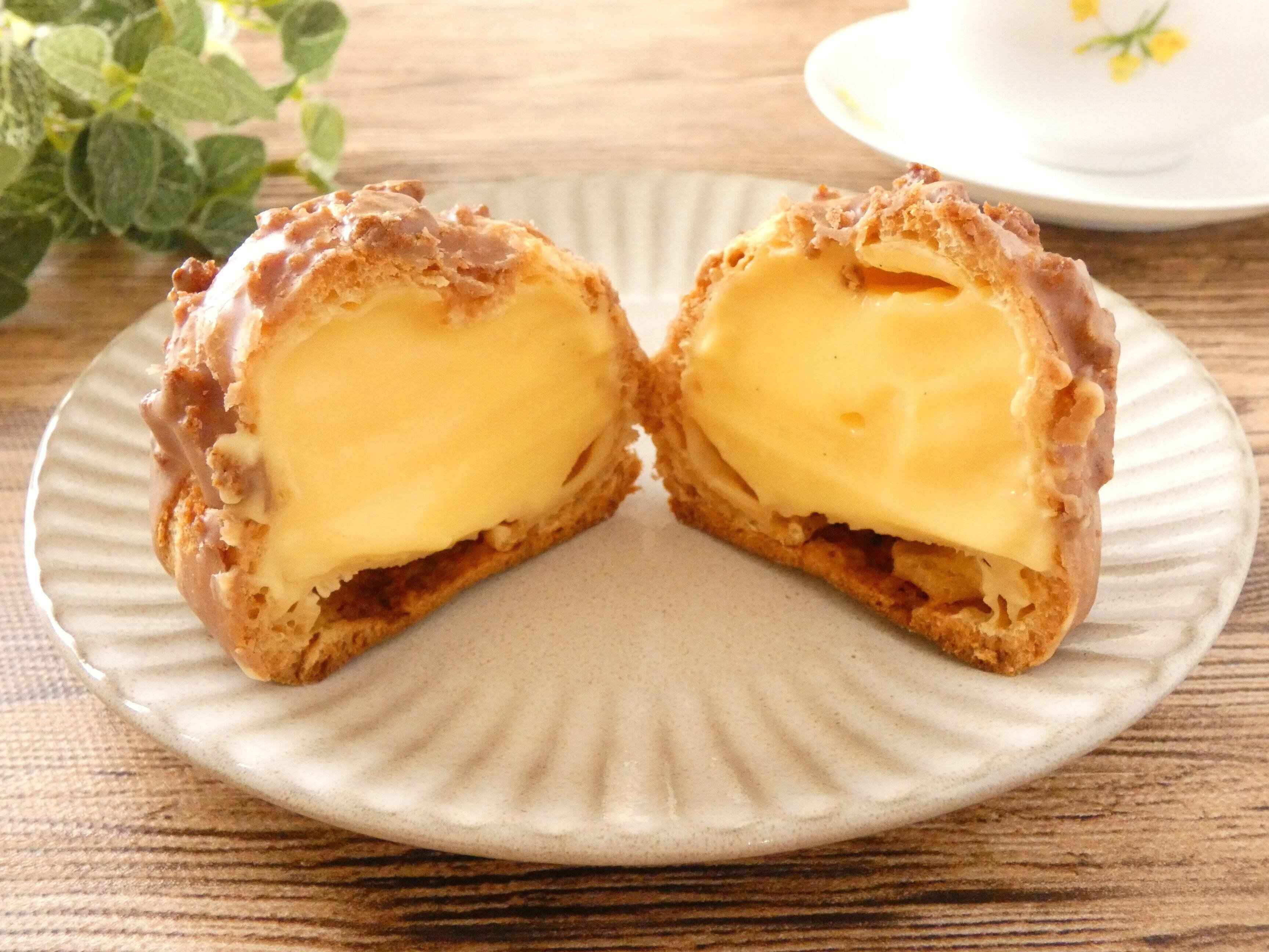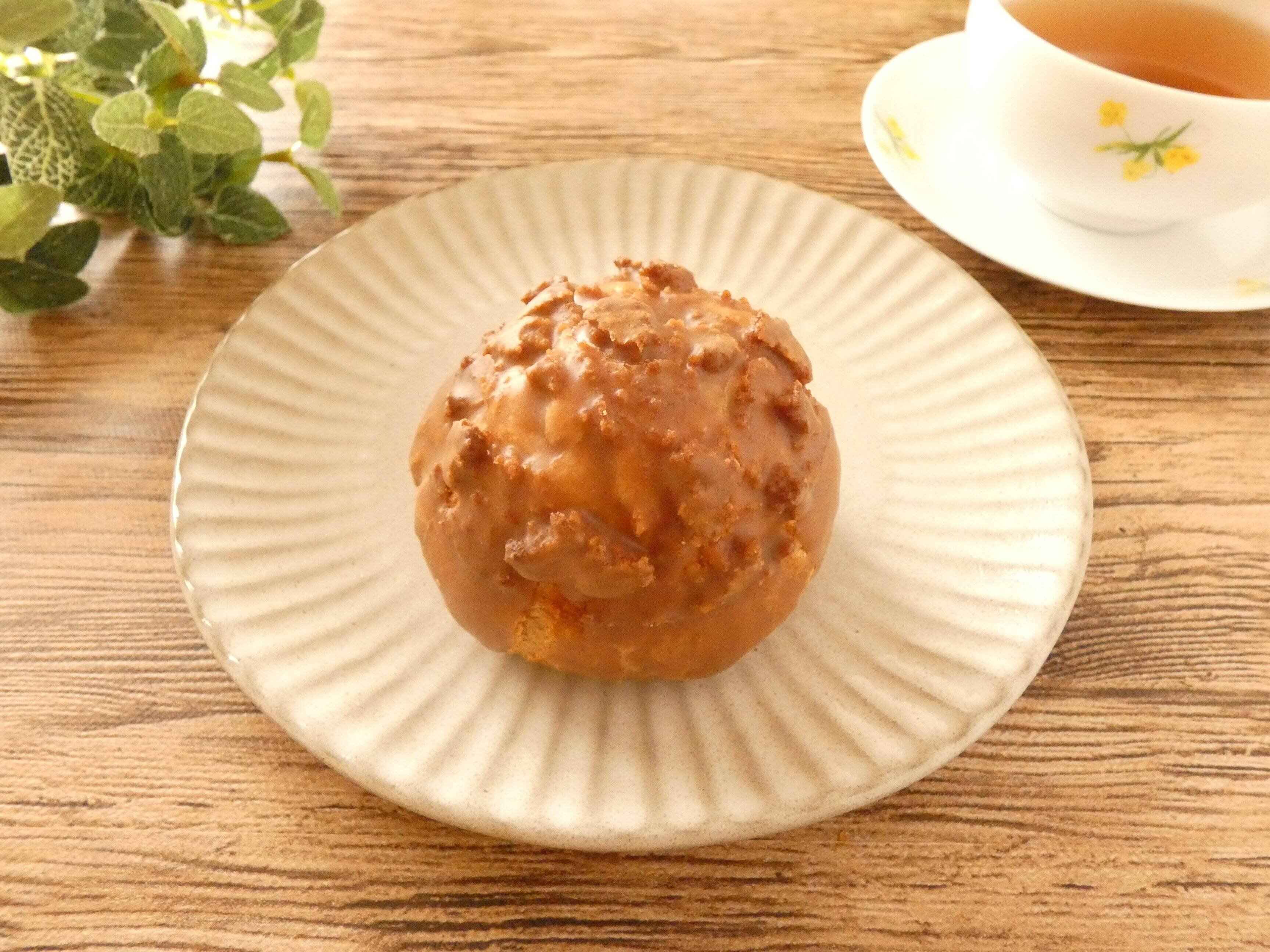 かりんとうをイメージしたシュークリームで、クッキー生地は黒糖風味。中にはカスタードクリームが入っています。