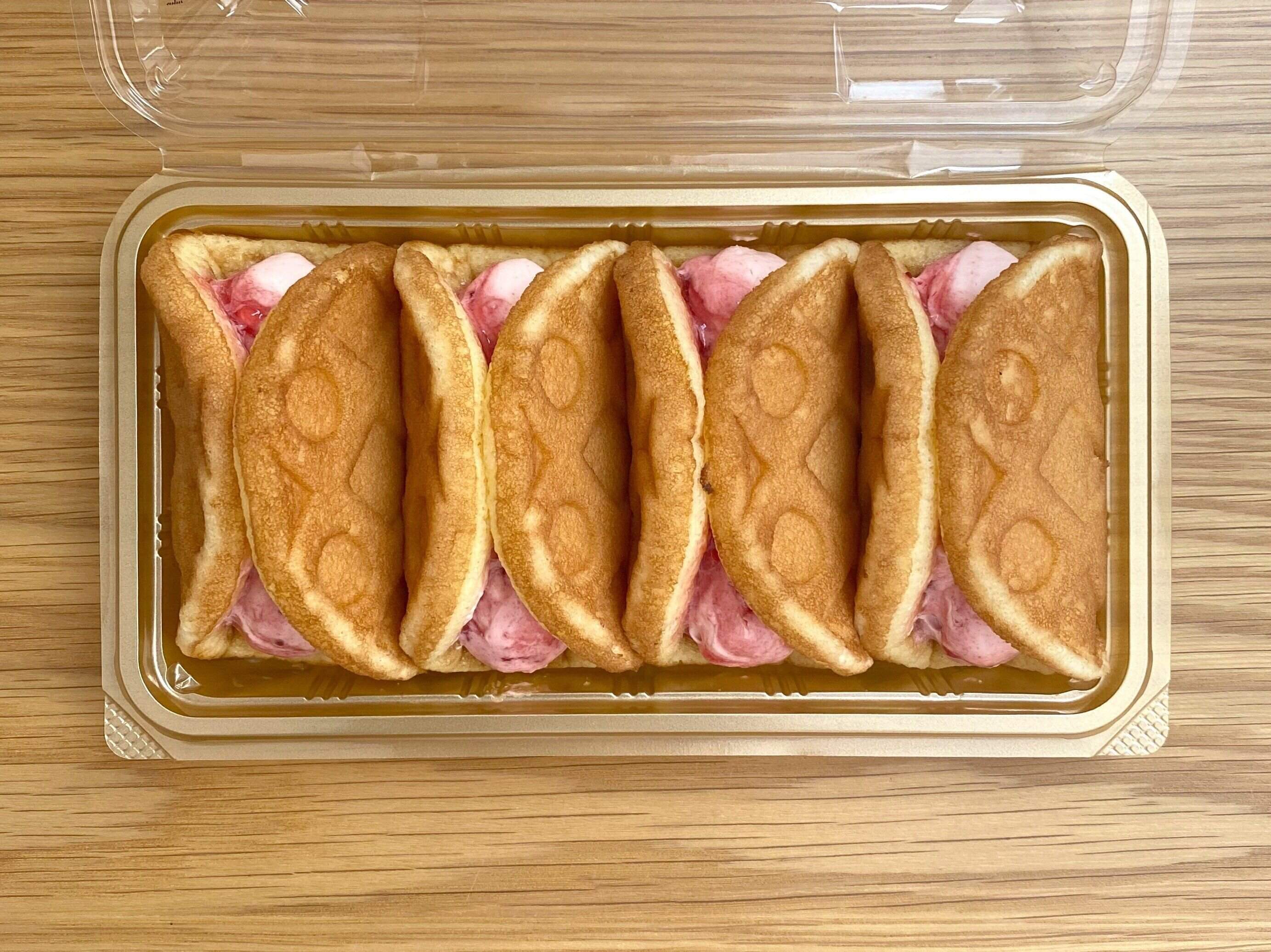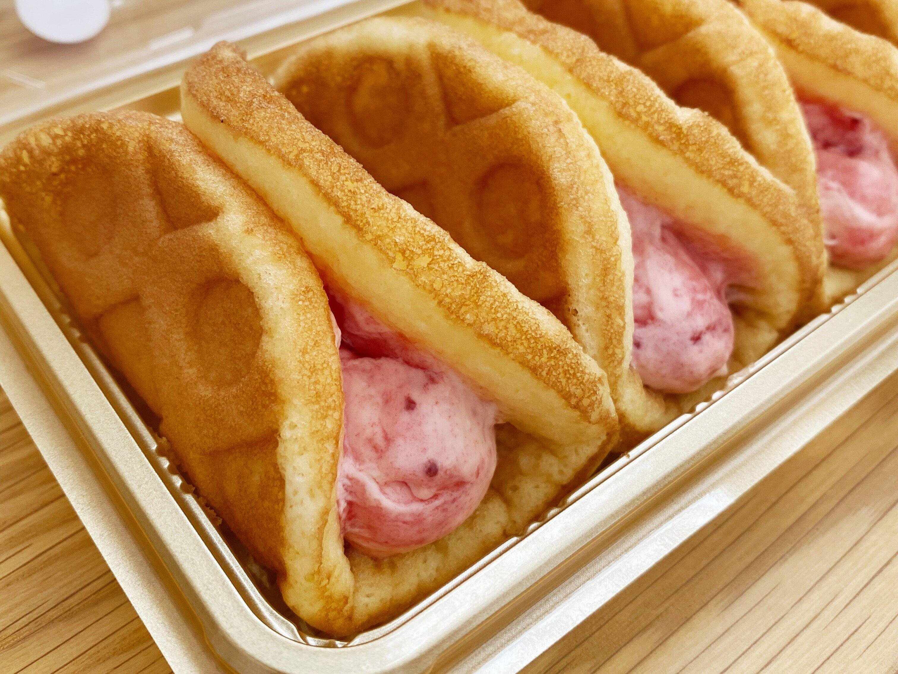 ふわふわのワッフル生地でいちごソース入りのクリーム包んだスイーツです。