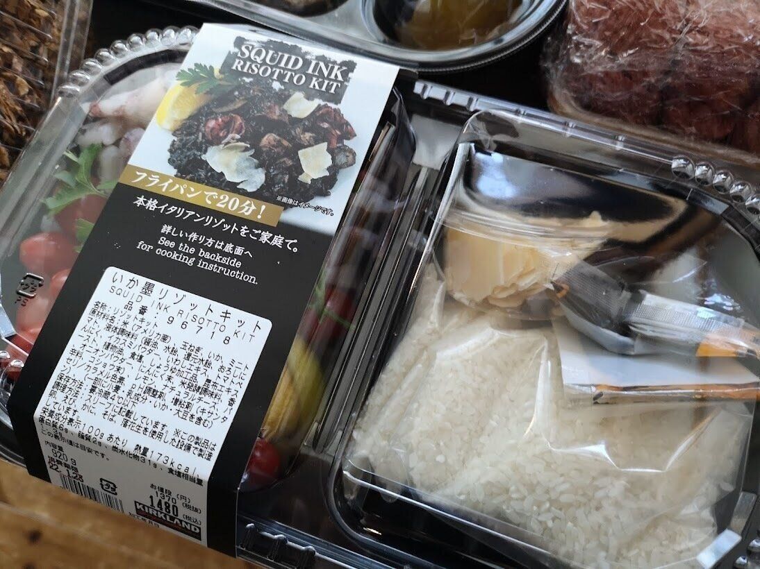 こちらもデリカコーナーの新商品『いか墨リゾットキット』。お鍋での調理が必要ですが、使う材料がお米から野菜、トッピングのチーズまで全てセットになっています。