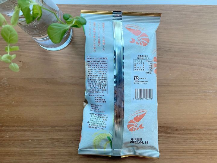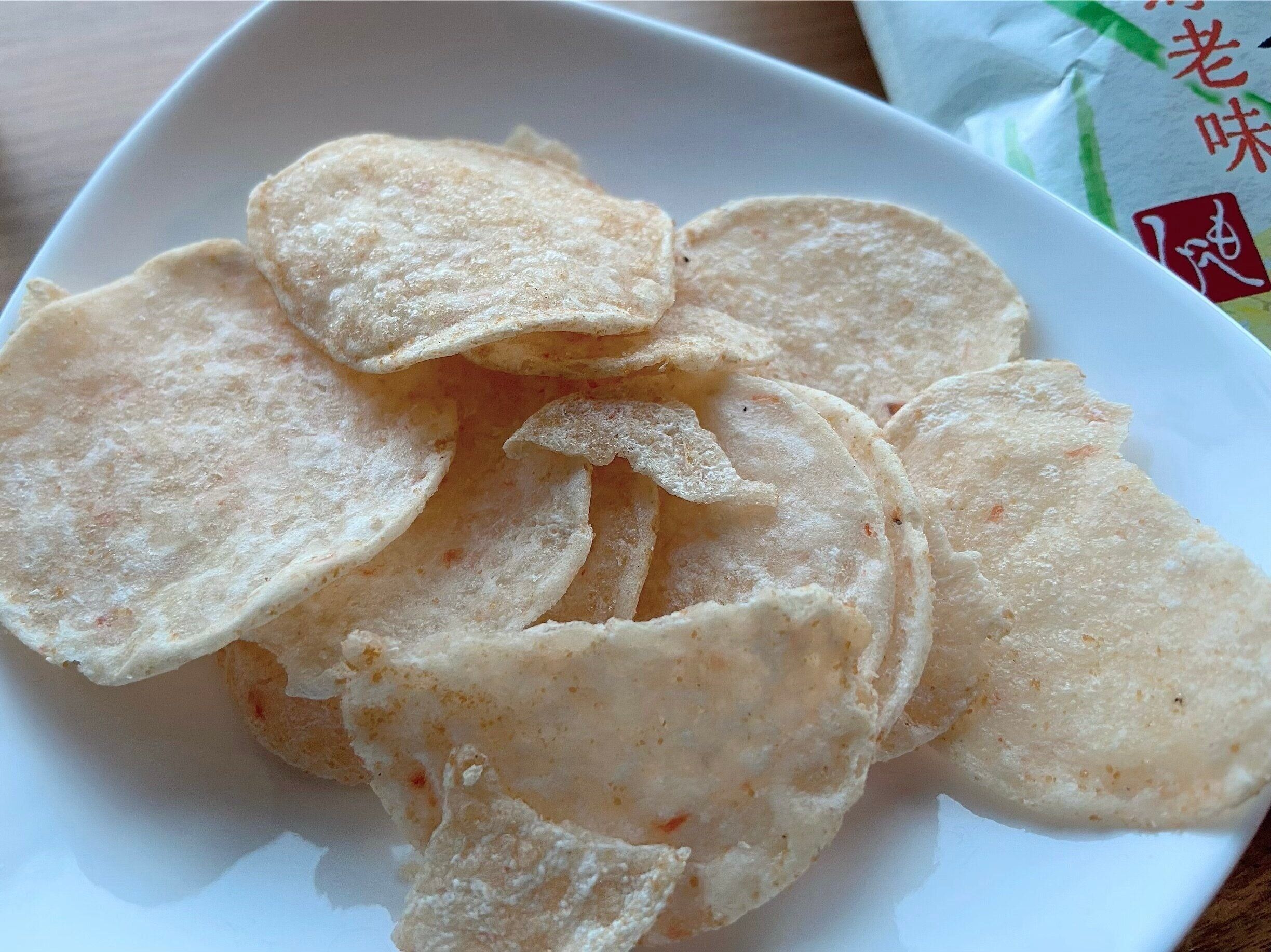 軽いお米のチップスでカリカリしていて、確かにエビのいい香りと風味。お煎餅ではなく、チップスなのがポイントです。