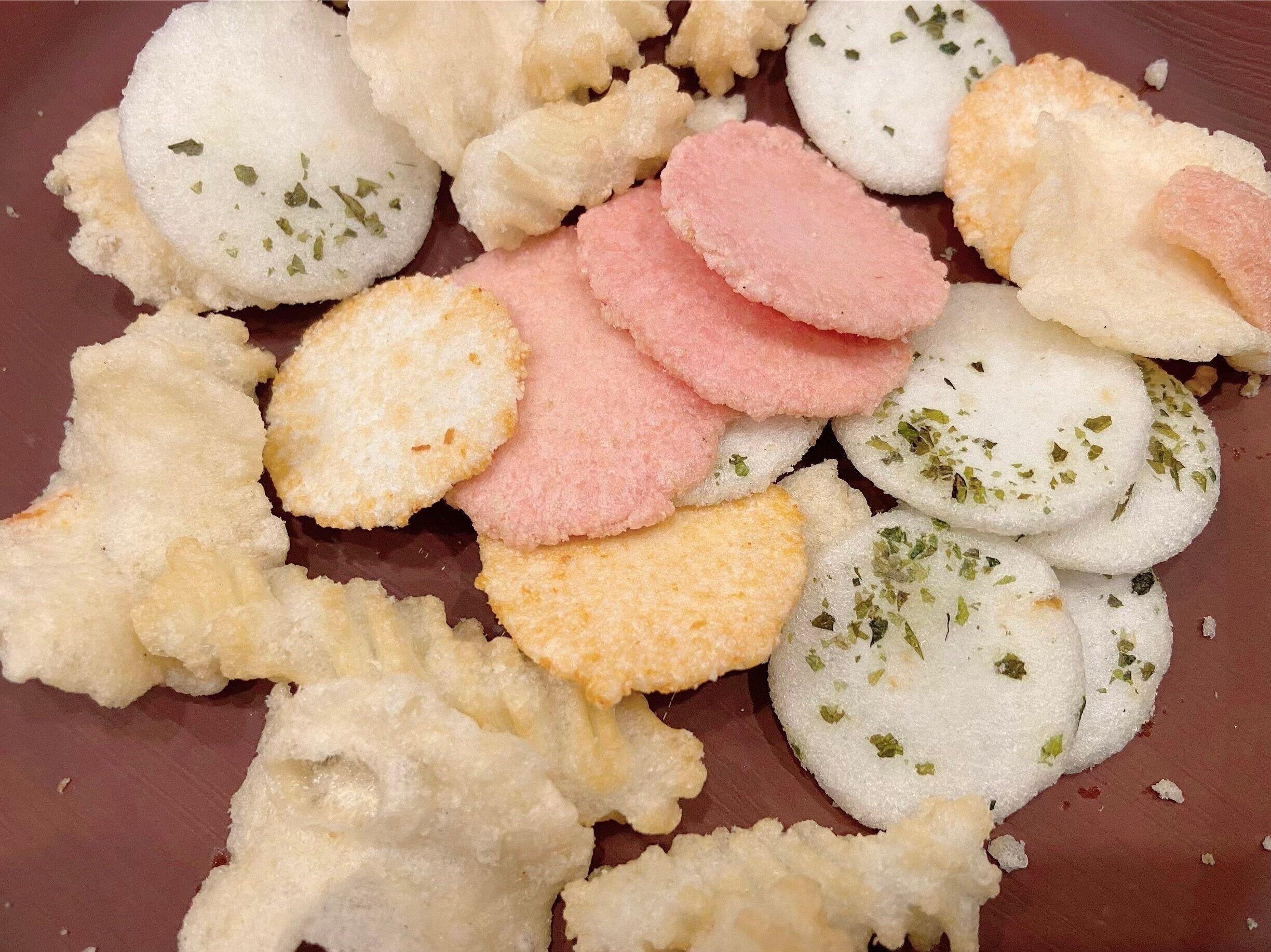 新潟県産のお米を使用し、優しい味でしょっぱすぎず美味しい。ポテトチップスとも、うす焼き煎餅とも違う、新しい食感です。