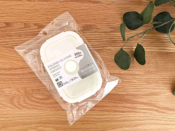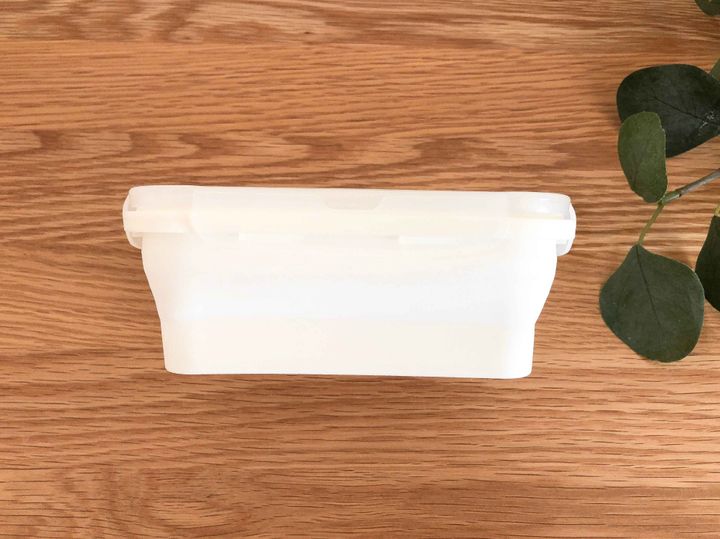 ダイソーの「折りたためるシリコーン保存容器」は半分ぐらいの高さにまで折りたためて収納に便利!食材の保存はもちろん、お弁当の容器としても使えそうですね。