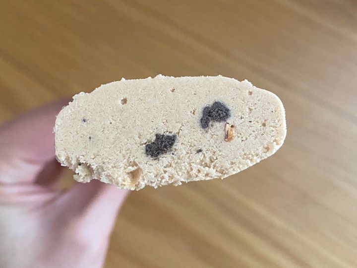 キャラメル味のアイスの中にクッキーとキャラメルアーモンドが入ったアイスバー。