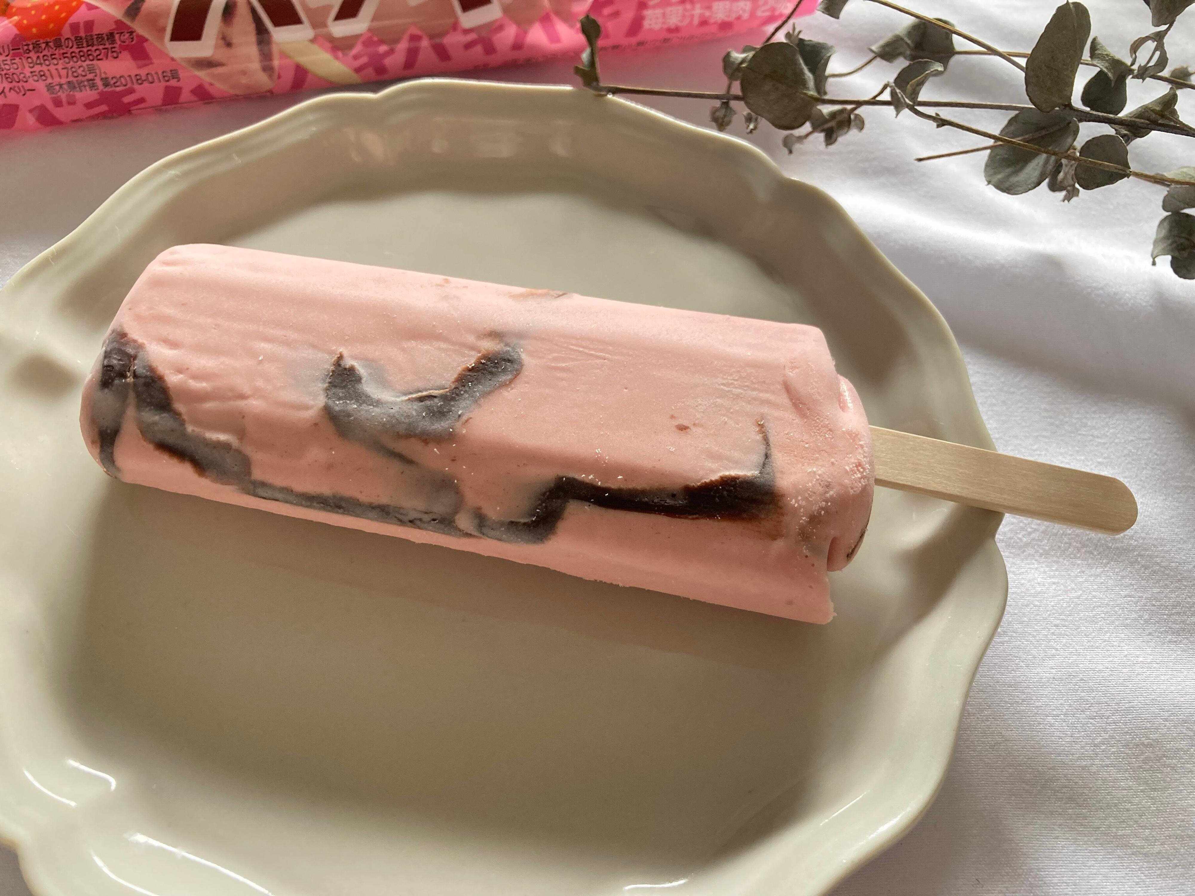 イチゴ味のアイスにチョコレートが入っているアイスです。