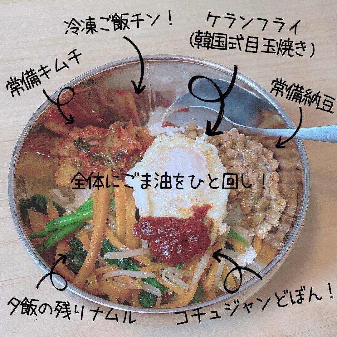 もし冷蔵庫にキムチやおかずが残っていたら、ぜひ韓国の家庭式ビビンバをお試しください。