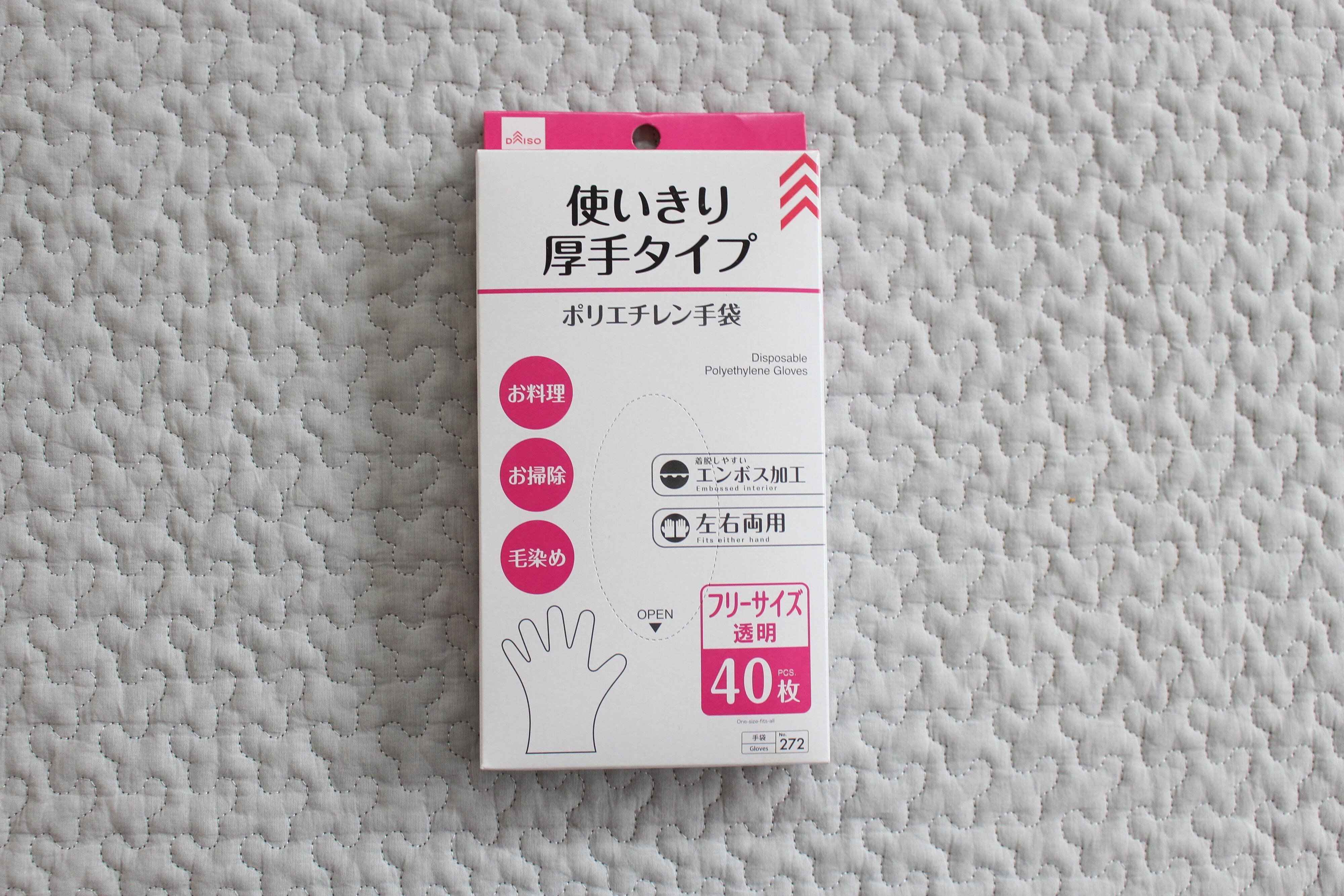 こちらも、キッチンで愛用している「ポリエチレン手袋」。