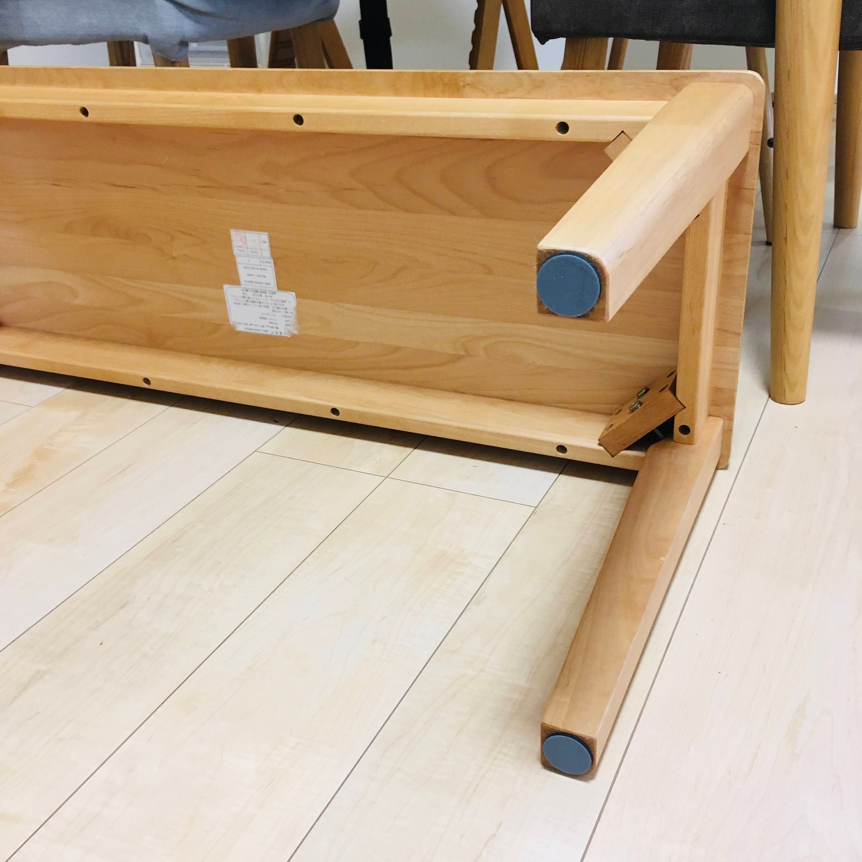 家中のテーブル、椅子、ベンチの下に【すべる床キズシール】を貼っています。