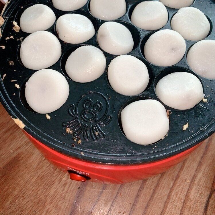 なんと!たこ焼き器にピッタリにハマる大きさだったので、我が家ではたこ焼き器で焼いてみることに。
