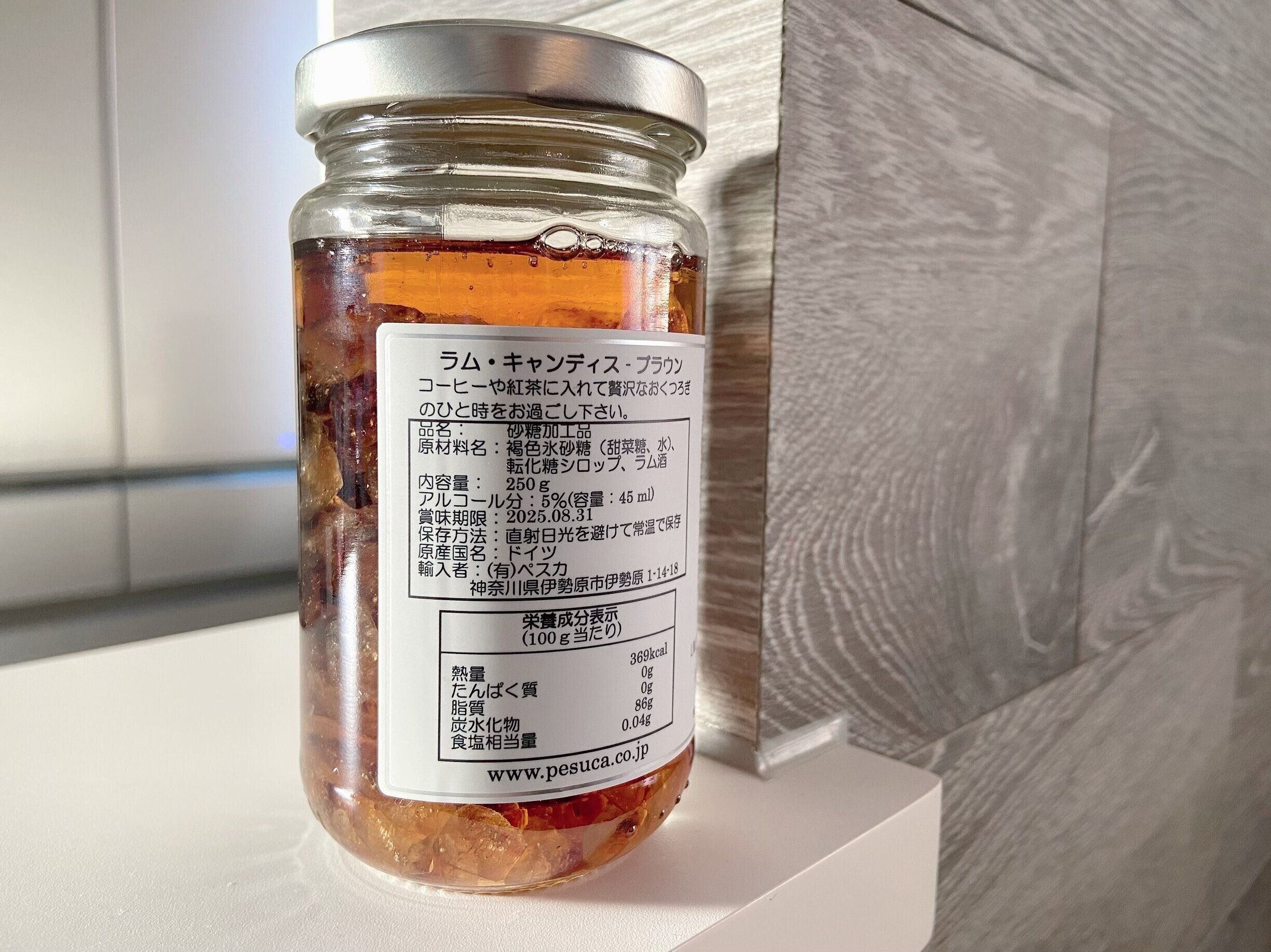 そもそも「ラムキャンディスブラウン」は何かというと、ラム酒のなかに氷砂糖が漬け込んであるものです。