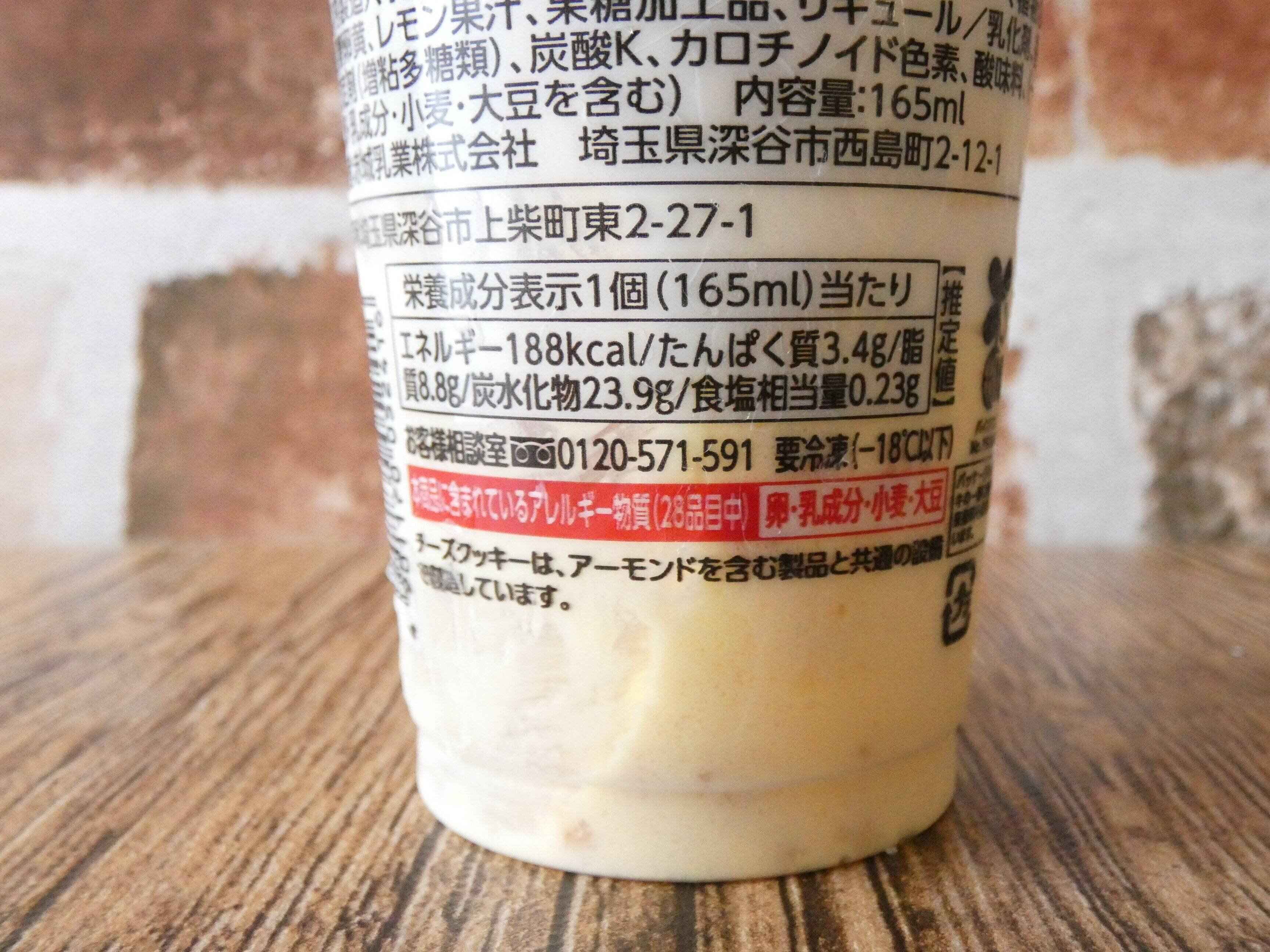 北海道産牛乳と北海道産クリームチーズをたっぷり使ったアイス。下はチーズクッキー入りのチーズケーキアイスで、上にはミルクアイスが絞ってあります。