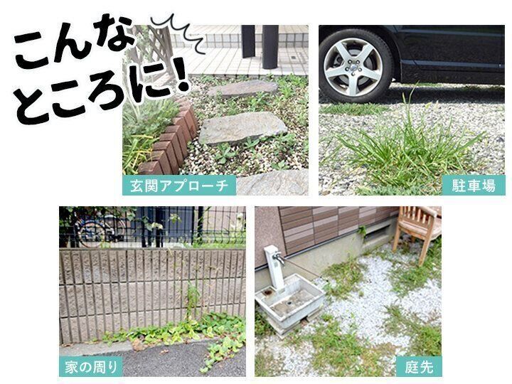 家に常備しておき、雑草が気になったその時にさっとまくだけでOK。草むしりのプチストレスにさよならです。