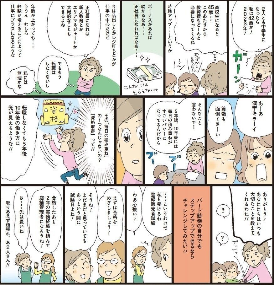 そもそも美久さんは、事務職をめざして医療事務の資格を取り、ドラッグストアの求人に応募しました。「『資格を取るだけ』じゃステップアップにならない」というのは本当にそのとおりで、採用や転職では資格に加えて実務経験を問われることも多いもの。勉強時間のやりくりは大変ですが、今の美久さんのように実務をしながら資格を取れれば、昇進や手当につながることもあり、有利です。
