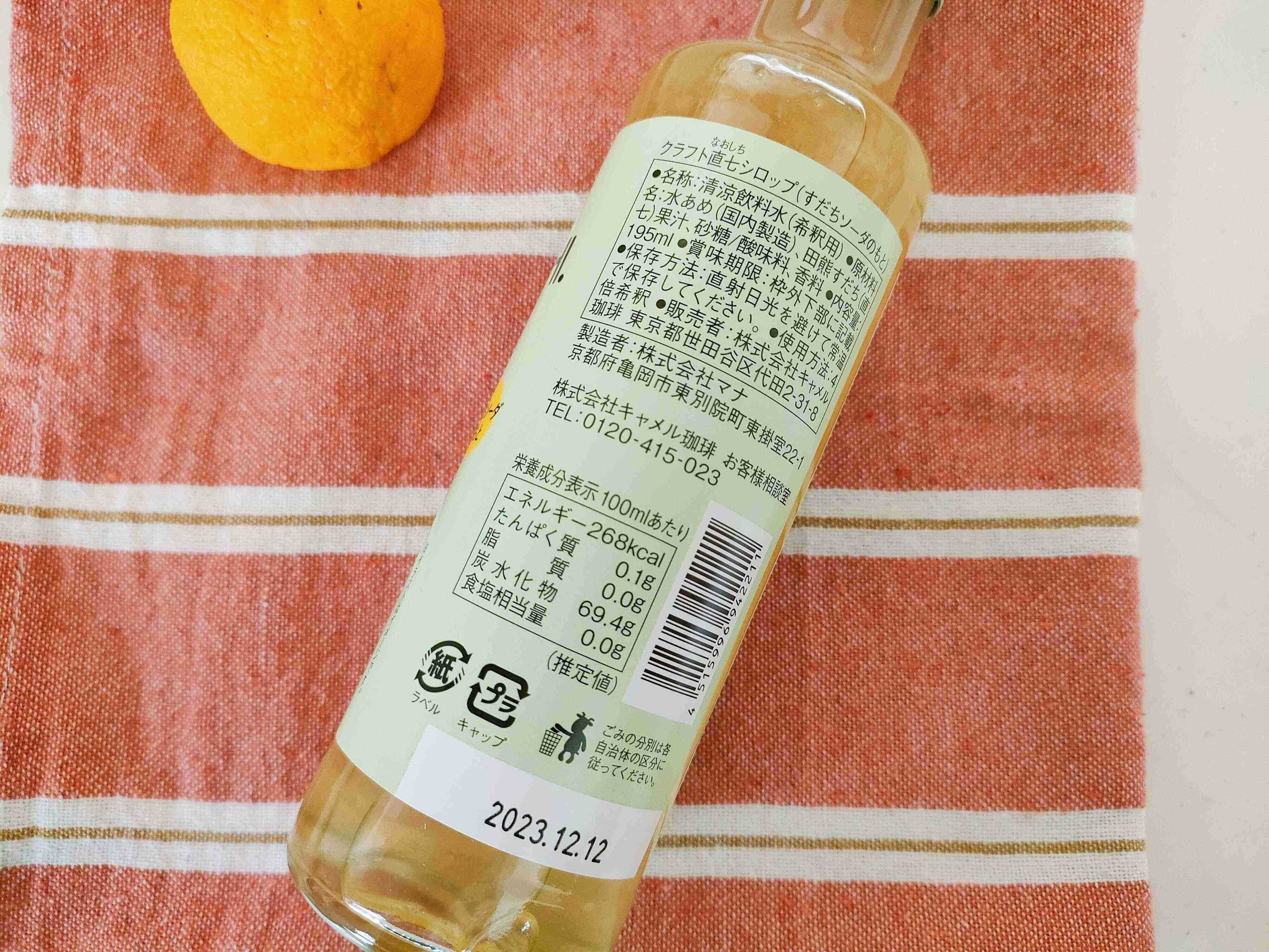 今回カルディから発売された「クラフト直七シロップ」は、クラフトシリーズの最新作です。今までコーラ、ジンジャー、チャイときて、この時期にぴったりな柑橘系シロップが登場しました。