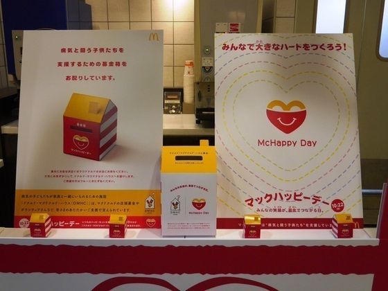10/22(日)は家族でぜひマクドナルドへ! レジ前には募金箱も設置しています。