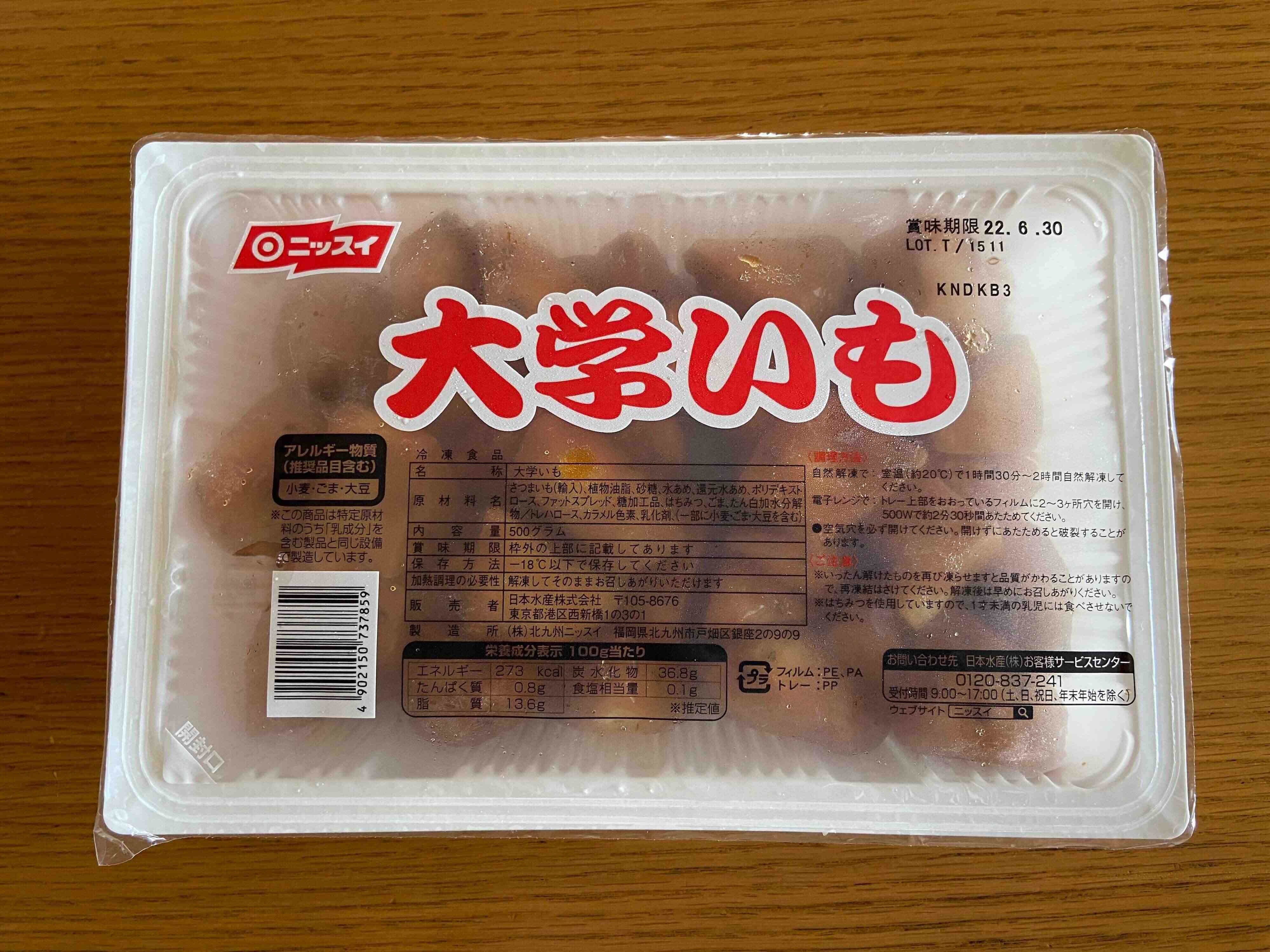 最近買って良かった第1位はこちら。500g入りの大容量パックで迫力のある「大学いも」(購入時価格:519円)。