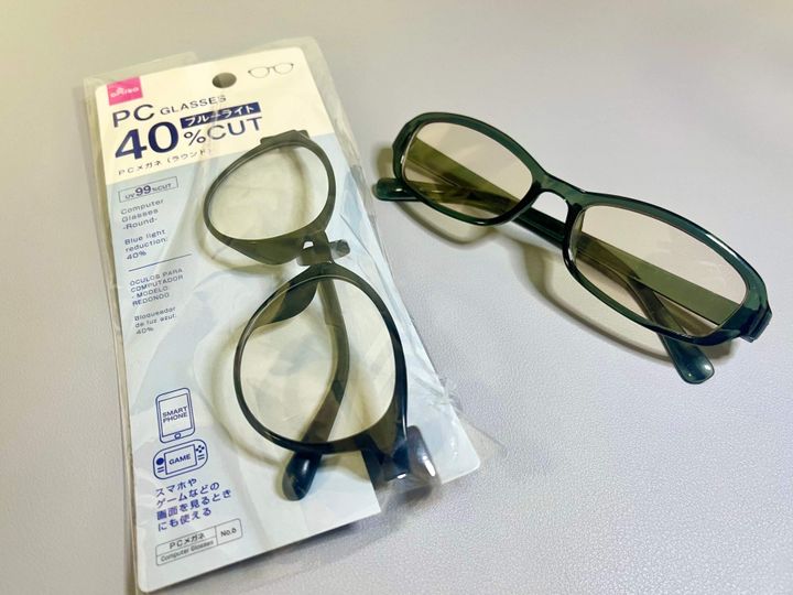 最近視力の低下や目の疲れが気になるようになりました。スマホやパソコンの画面のブルーライトは目や体に負担がかかるといわれているので、ダイソーで見かけたこのメガネを購入してみました。