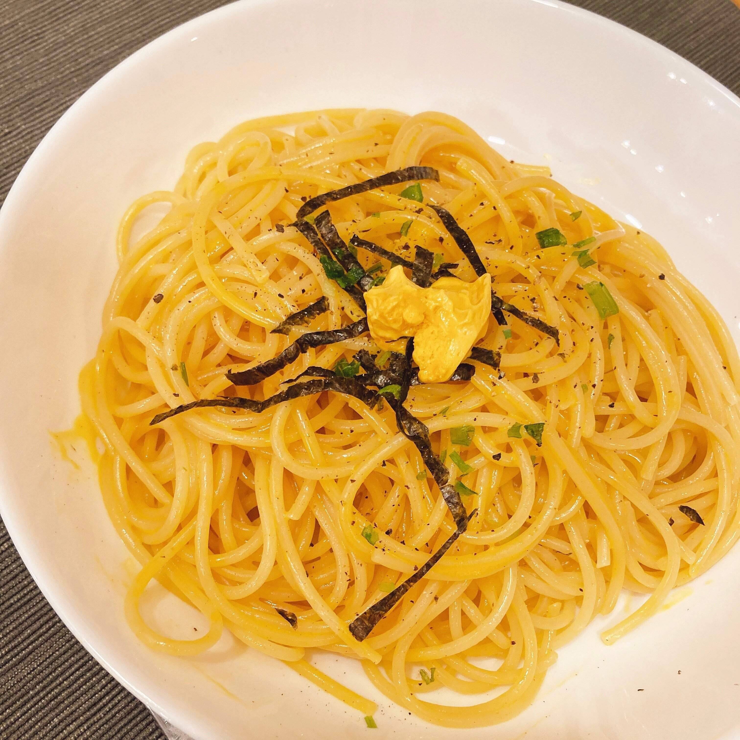 一人前のゆでたパスタに大さじ一杯の「うにバター」を和えるだけ! 絶品うにバターパスタのできあがりです。味も濃厚でおいしいのに、ササっと簡単につくれるのが最高なんです。
