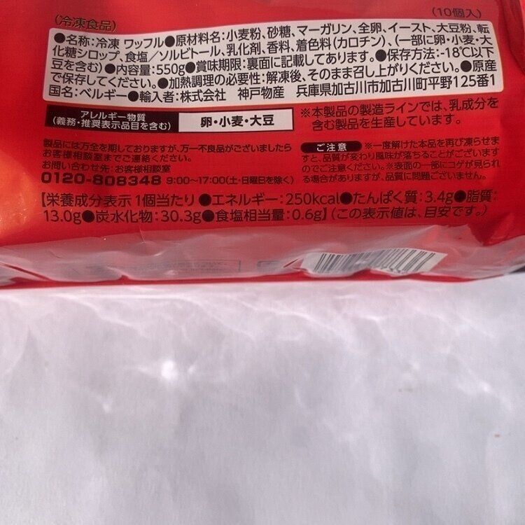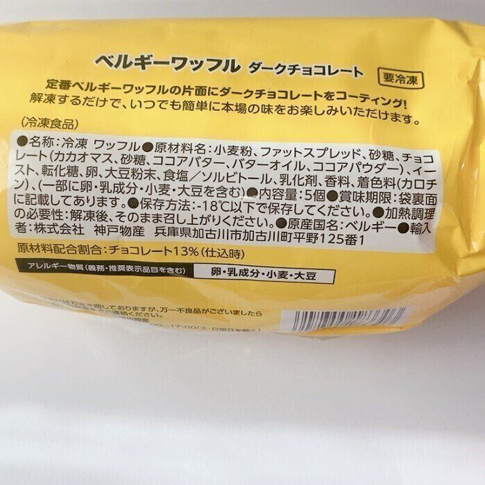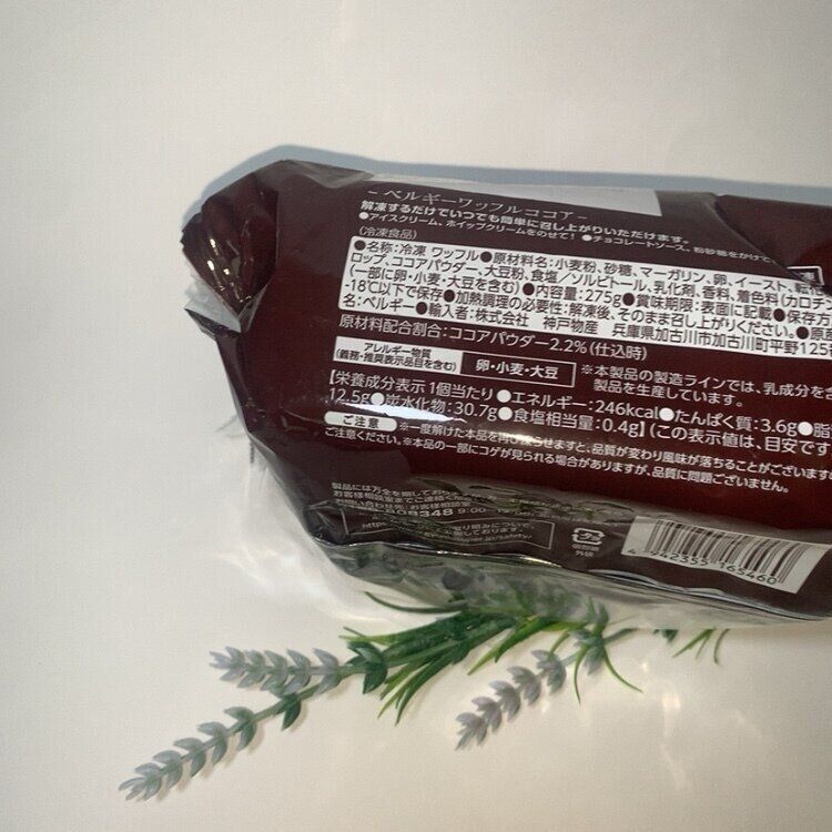 ベルギーワッフルの半面にチョコレートが付いているため、今回は自然解凍でいただきます。