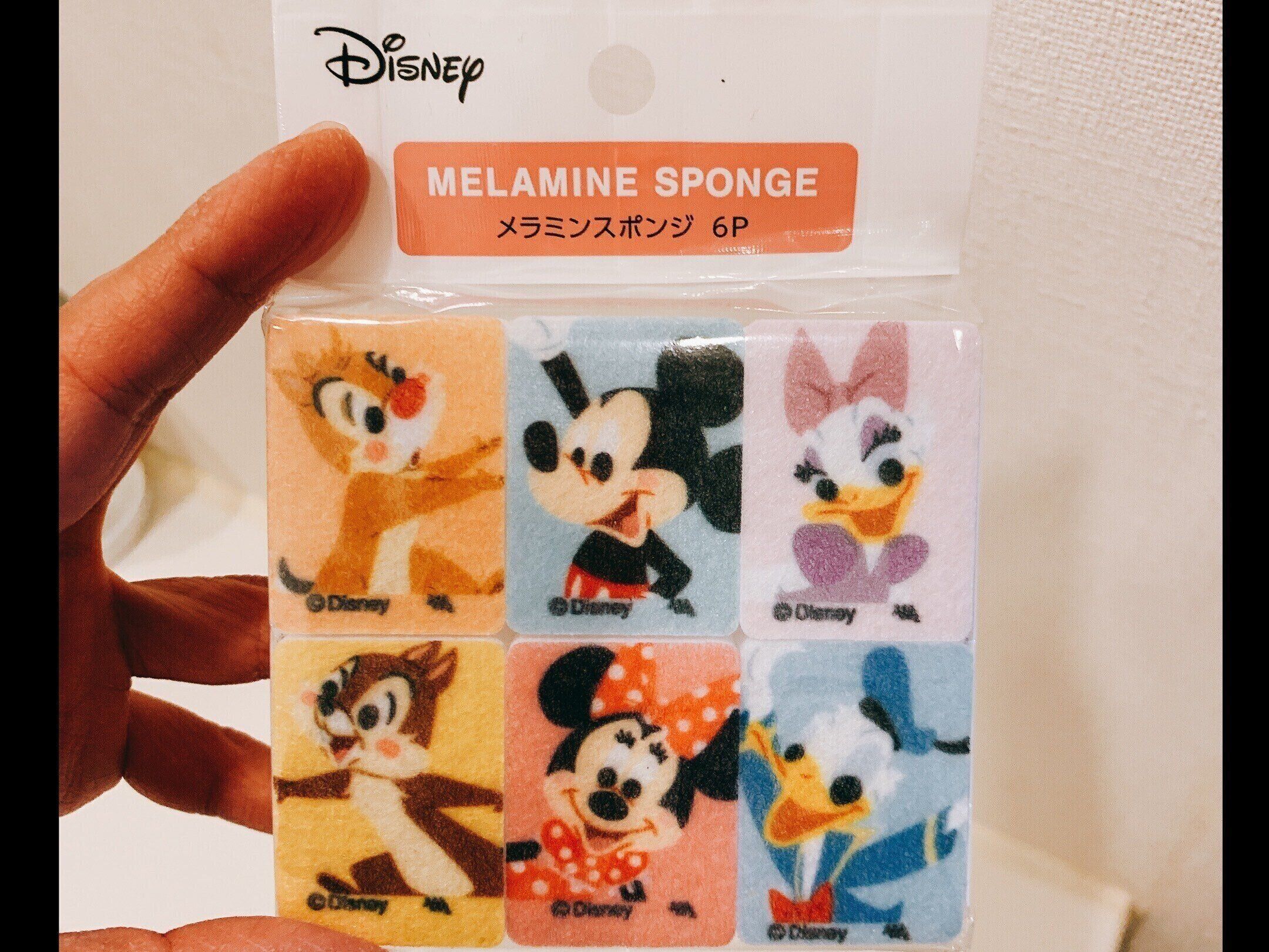 セリアで見つけたメラミンスポンジ。つい可愛い!!とすぐ手に取りました。ミッキーやトイストーリーやいろいろと種類がありました。全種類衝動買いしてしまいそうになるほど可愛いです。