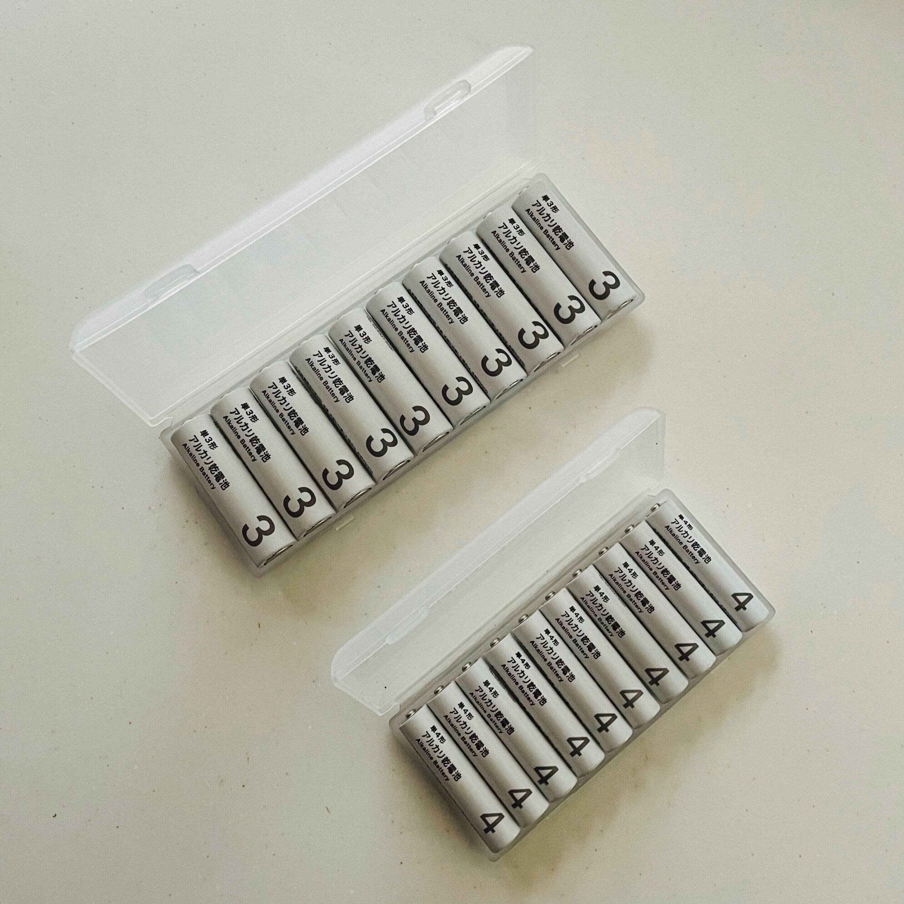 こちらが購入した乾電池ケース。単3用と単4用を購入しました!ケース1つに乾電池が10本収納可能。