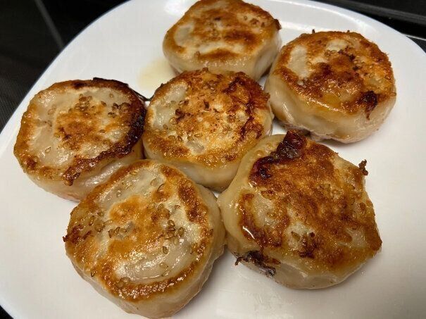 筆者は焼き餃子を調理するのと同じように、フライパンで蒸し焼きにしてみました。