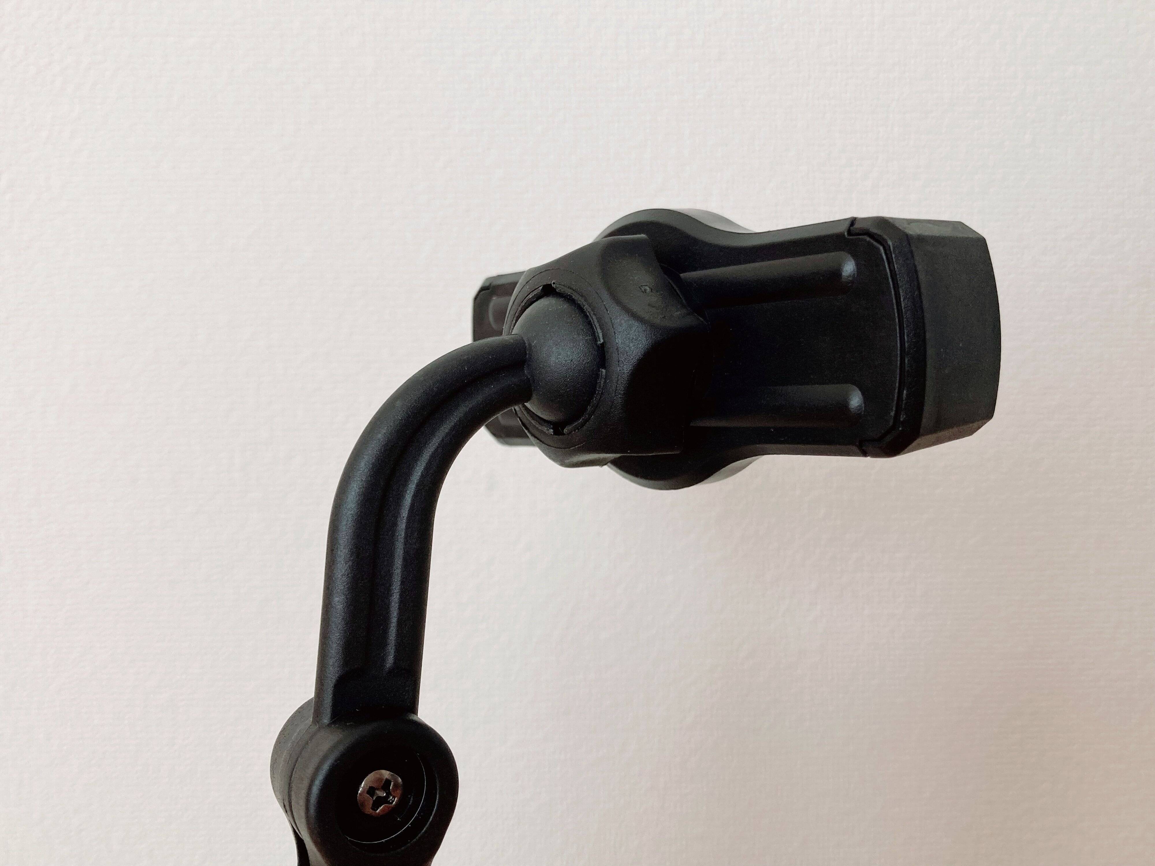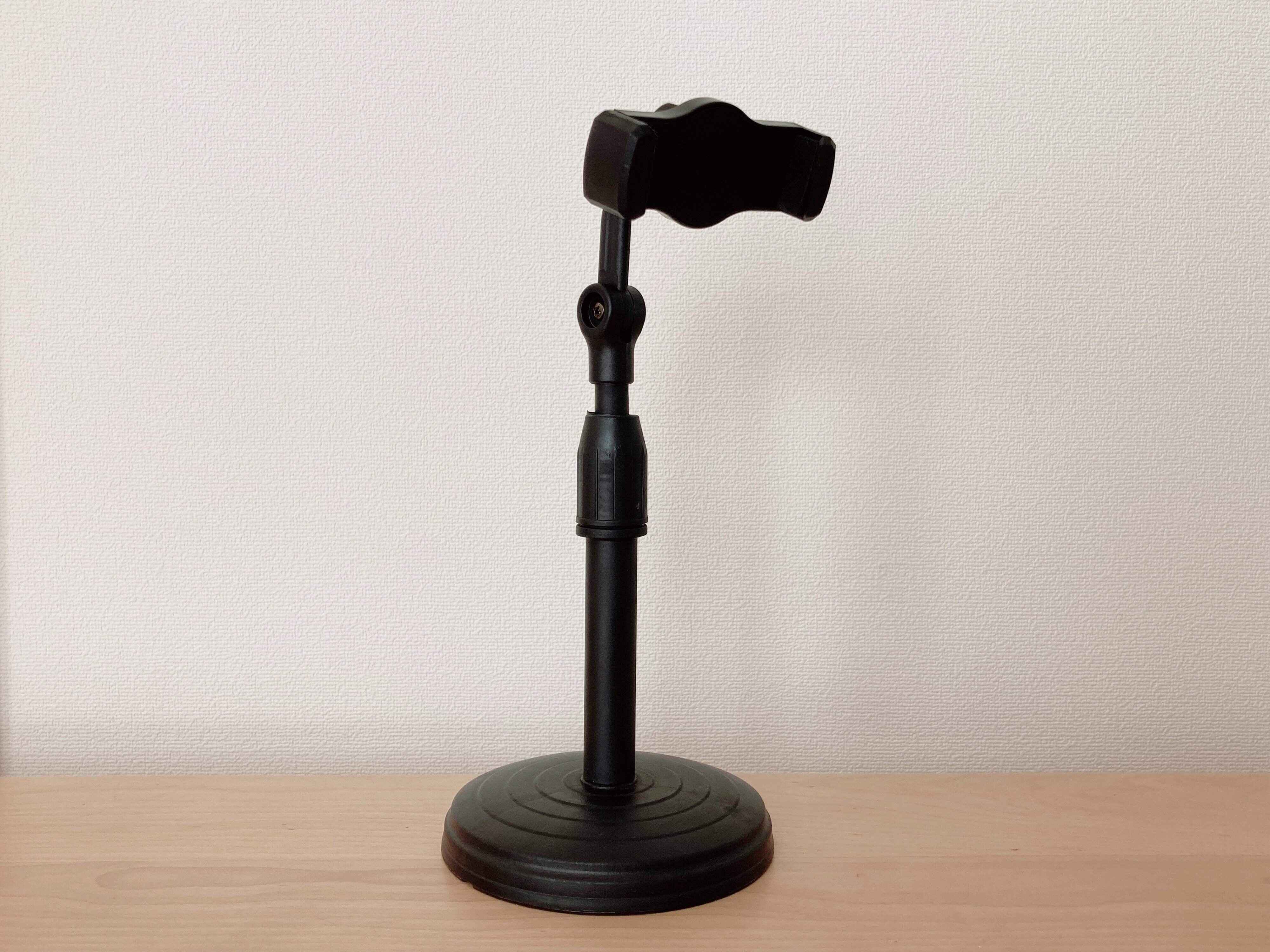 このスマホスタンドのイチオシポイントは高さ調節ができるところ。パーツを緩めるとポールが伸縮するので、自分のお好みの高さにすることができます。