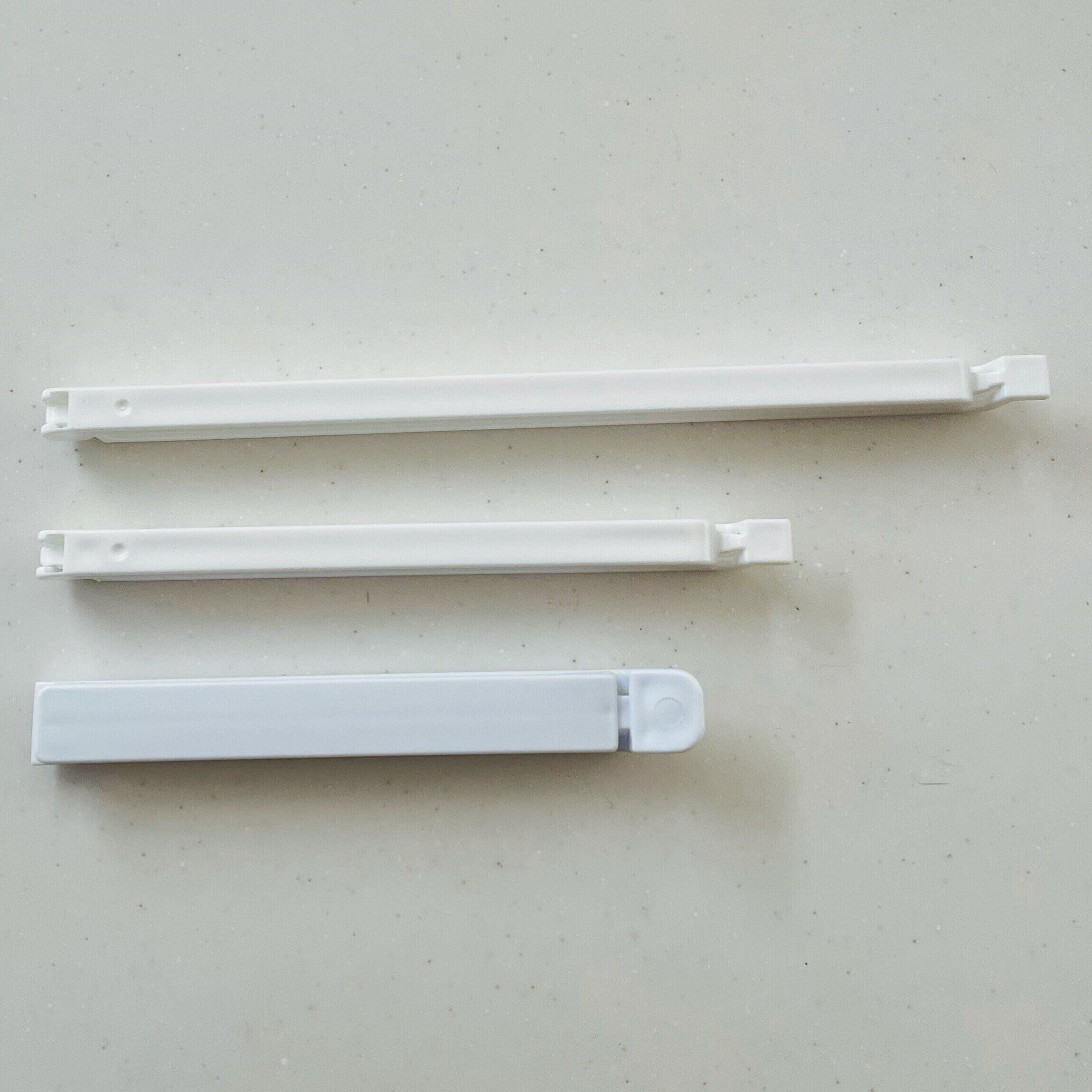 長いほうが冷凍食品などの袋幅16cmまで対応可能で短いほうが乾麺や惣菜パンなどの袋幅11cmまで対応可能。