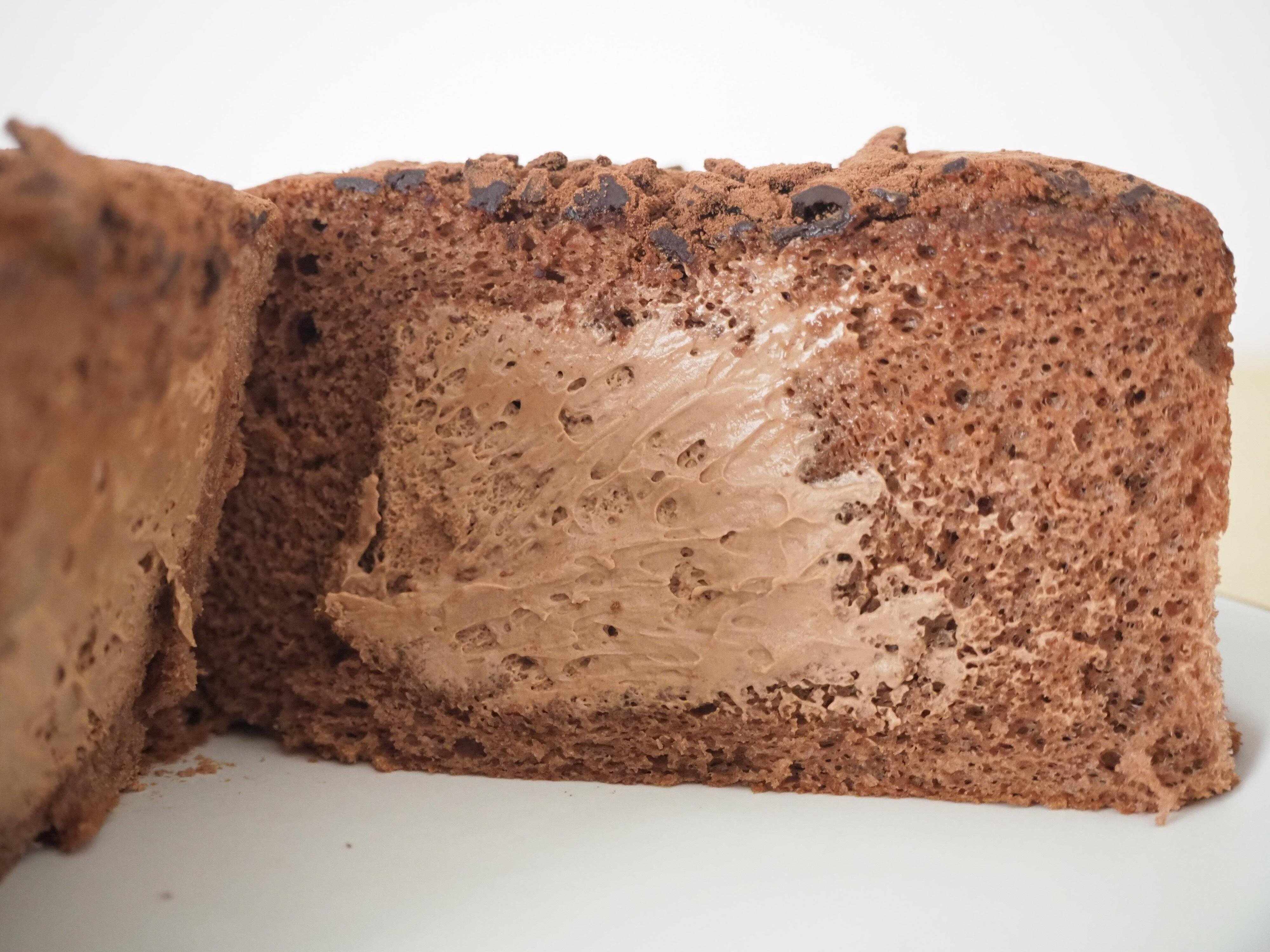 チョコレートのシフォンケーキの中にチョコレートクリームが入っているのが、こちらの商品の特徴。