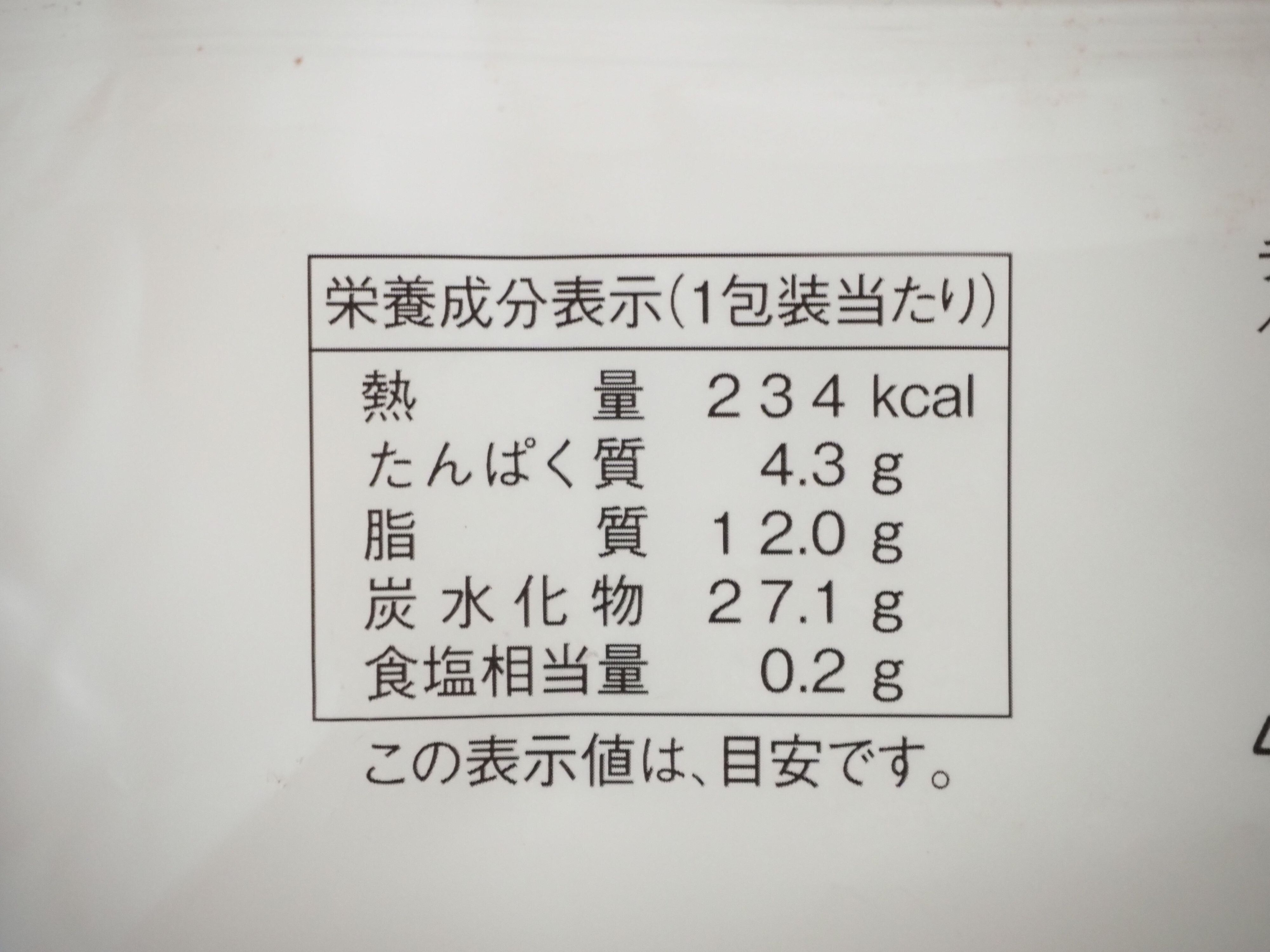 カロリーは234kcalです。私が購入したものの消費期限は、購入日を含む4日でした。