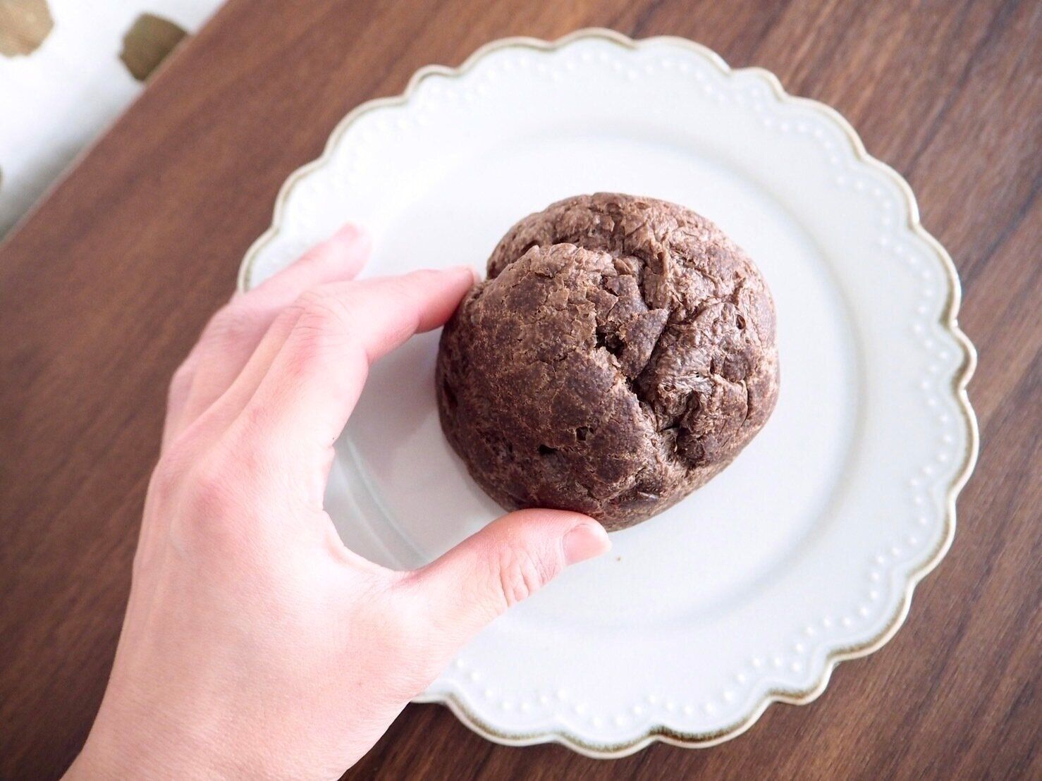茶色くてごつごつと強そうな見た目ですが、手で持つと柔らかくて優しいシュー生地です。
