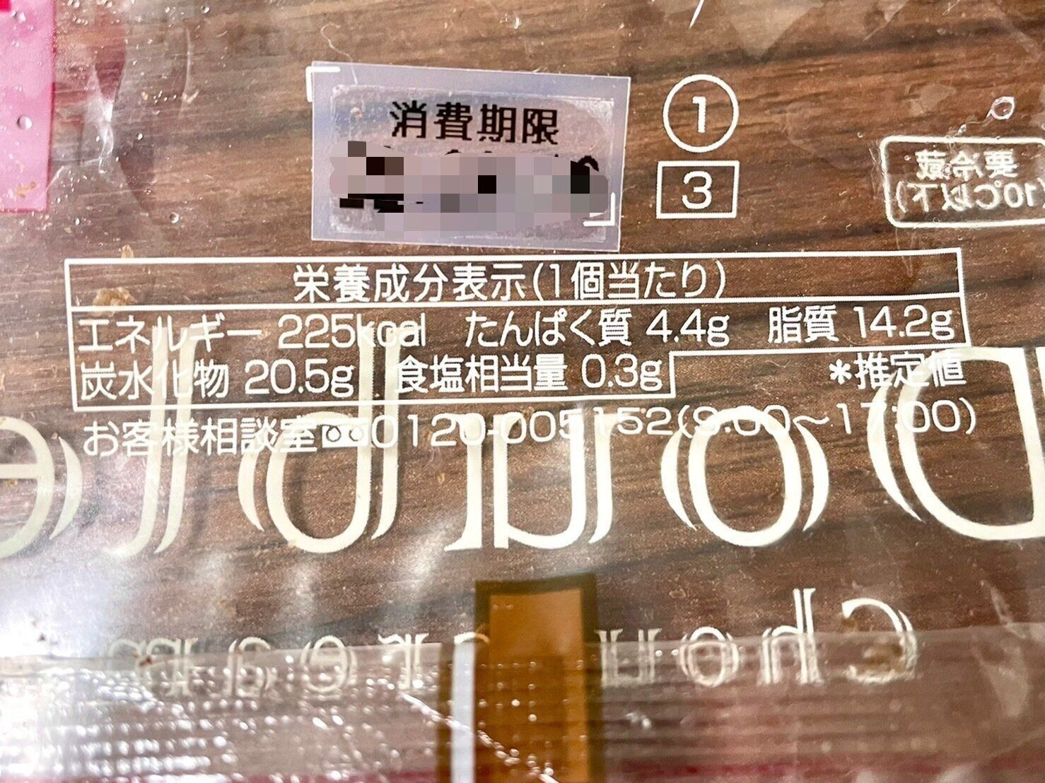 1つあたり225kcal、シュークリームにしては少しカロリーが高めでしょうか。