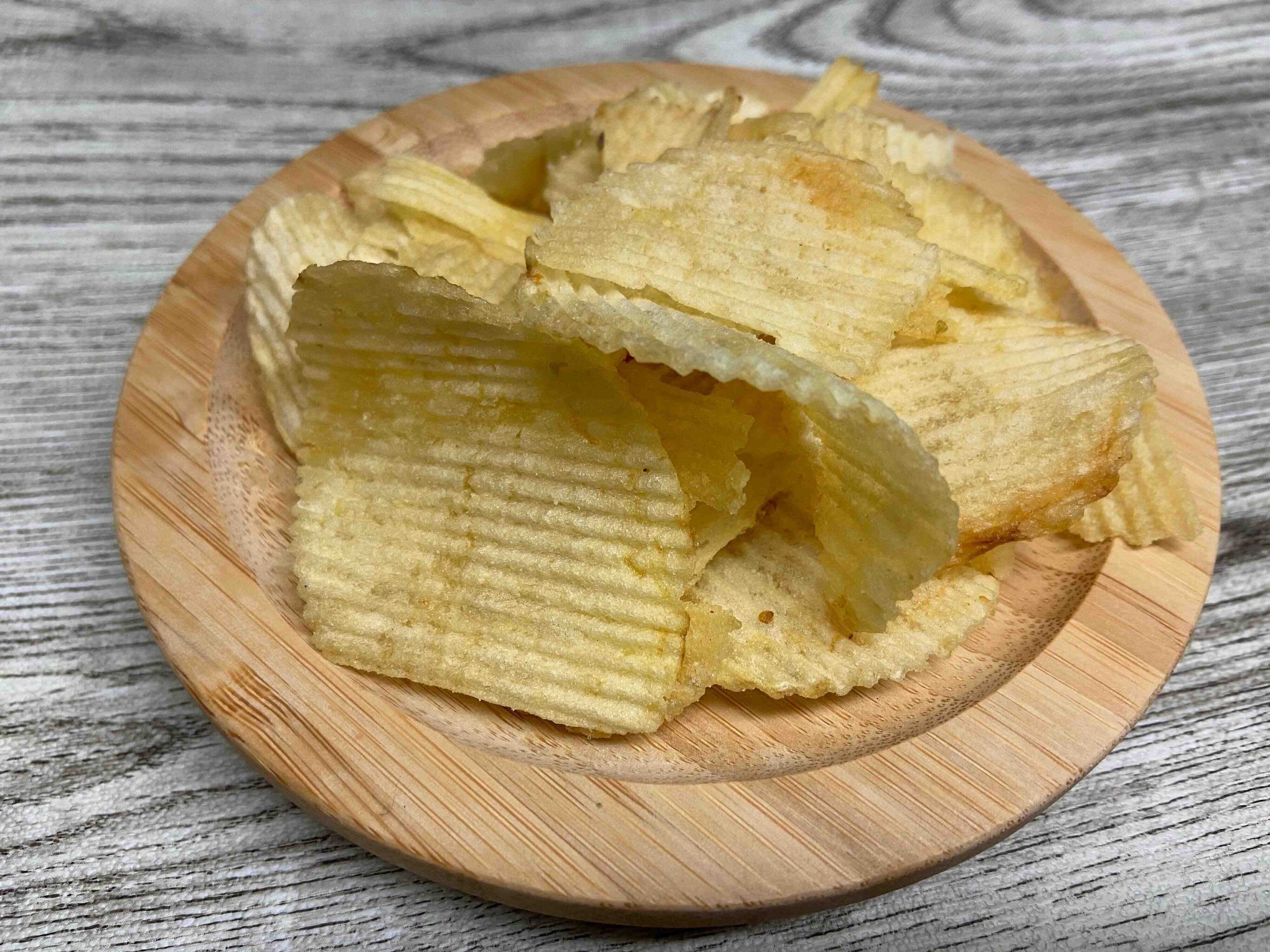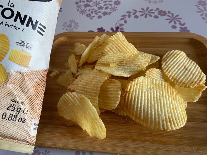 つづいて塩バター。こちらは波型で厚みがあります。食べてみると最初普通の塩味かな?と感じますが後味にほのかにバターのコクのある風味が広がります。